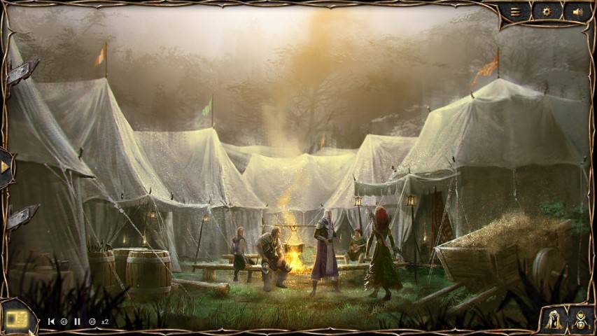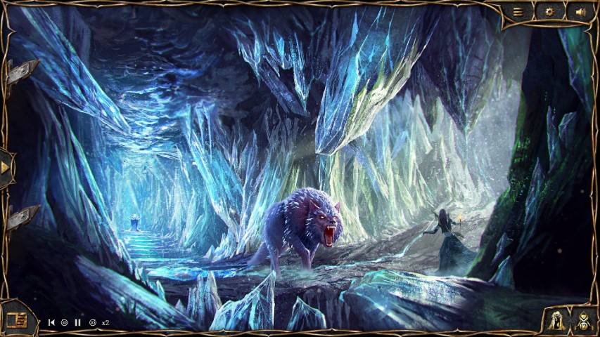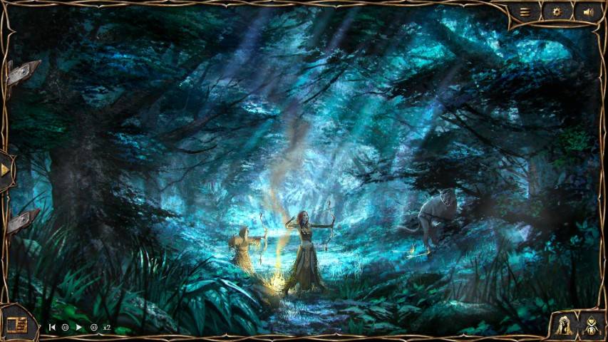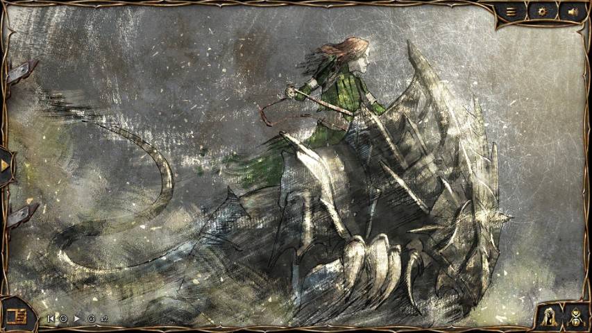 Il lavoro visivo si basa su tantissimi artwork animati che fanno da sfondo ed illustrano le diverse situazioni. Nel gioco ne conteremo oltre 700, una più bella dell’altra. Un lavoro enciclopedico, mastodontico, di altissimo pregio. I disegni, infatti, riescono a creare quell’atmosfera che tipicamente si accosta e si accompagna alla lettura. Si apprezza davvero l’area fantasy in ogni angolo di Hesperia: che si tratti di una foresta abitata da silfidi o che si esplori una grotta ghiacciata o ancora che si combatta per i viali di una città fortificata o che si vaghi lungo i sentieri naturali del Continente.