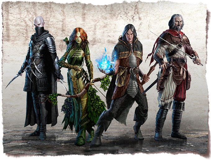 Conosciamo, quindi, Leon, un mago temuto, gran maestro di elementi ed arti magiche; Ancoran, una ragazza silfide brava nella caccia e con arco e frecce (il tipico ranger “elfico di D&D” se vogliamo fare un paragone); Ancalimo, un elfo oscuro assassino dal passato oscuro e Dagarast il bardo guerriero di mezza età abile con la spada che in passato è stato il mentore di Leon.