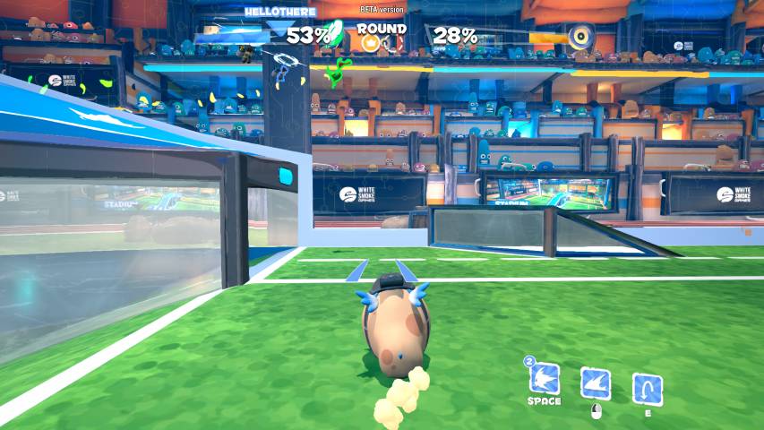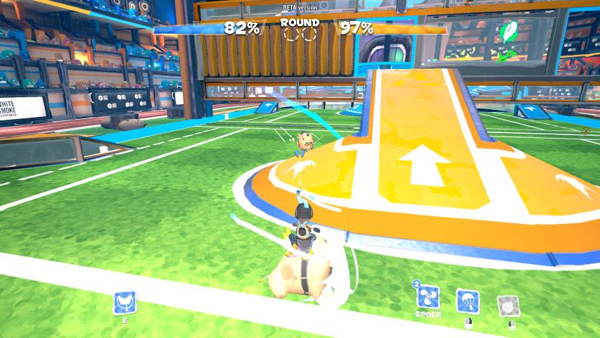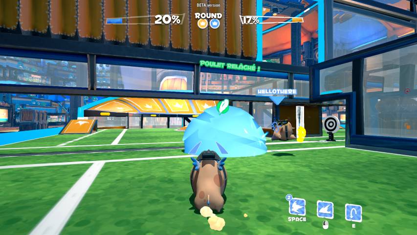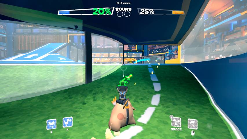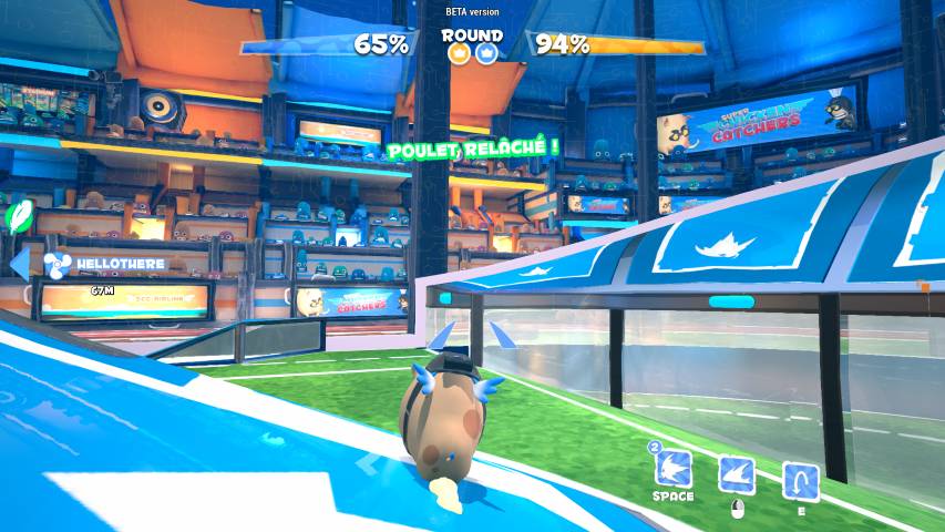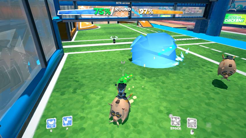 I colori sono accesi, e l’engine è talmente stabile che con l’Asus Rog utilizzato per questa prova (I7 7870HQ – Gtx 1070 8 Gb – 16 Gb di memoria ram) il framerate è risultato stabile a 144 fotogrammi per secondo incrollabili. Tale fattore è molto importante per un multiplayer competitivo qual è Super Chicken Catchers. Per quel che riguarda il comparto sonoro, possiamo dire che si sposa bene con l’azione durante la partita, ed i suoni di cariche, esplosioni, salti e planate sono riconoscibili e ben definiti anche come qualità. È chiaro White Smoke Games intenda sviluppare il gioco senza fretta, garantendo alte prestazioni e fluidità senza dimenticare il colpo d’occhio.