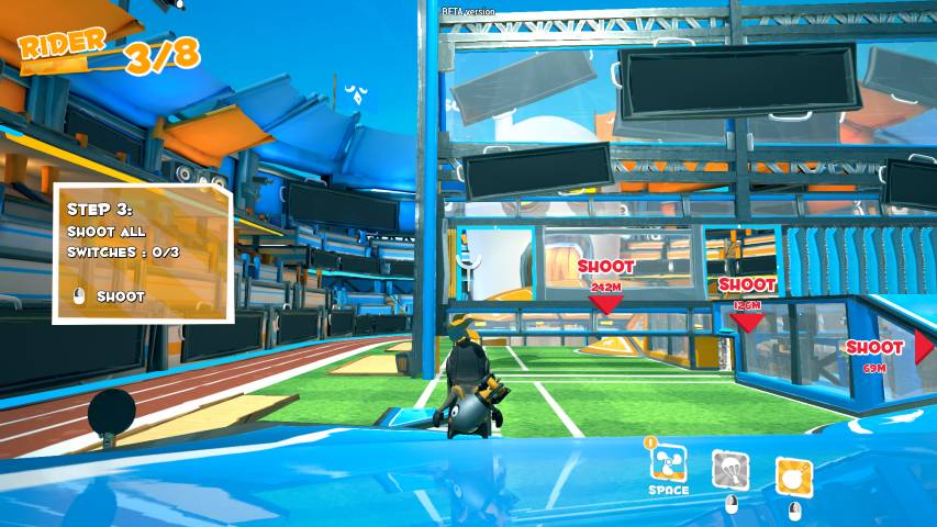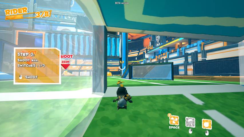 Avviato il gioco, la nostra prima scelta è quella di affidarci al tutorial, così da apprendere le meccaniche base per le nostre prossime avventure. Si parte con il raider, il cavaliere, che può compiere salti e planare come un elicottero, e dispone di una sorta di “bomba” che può servire tanto per aprirci porte e corridoi altrimenti inaccessibili, quanto per tenere lontana la squadra nemica che vuole portarci via l’ambita preda, o farli saltare in aria e riuscire a riprendercela.