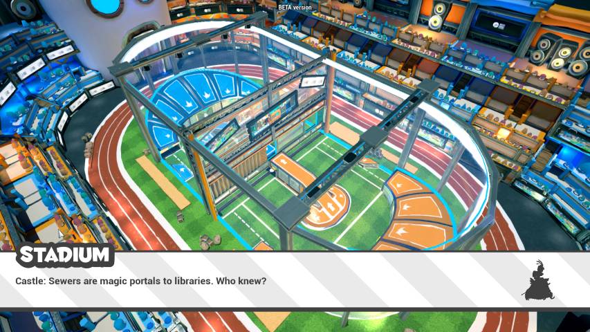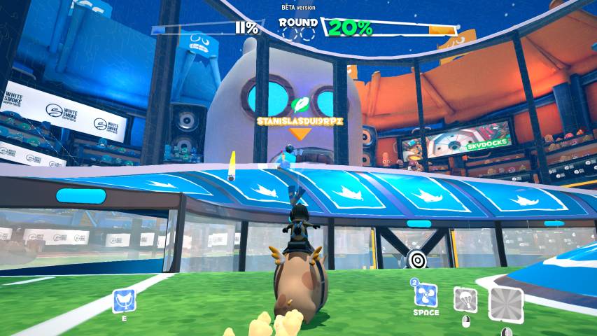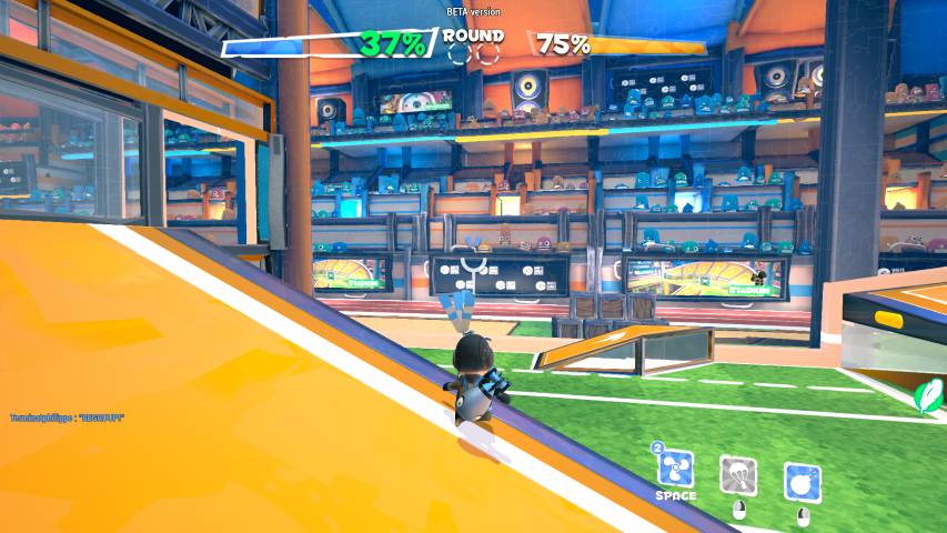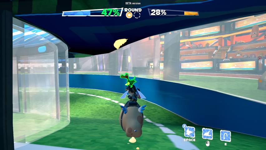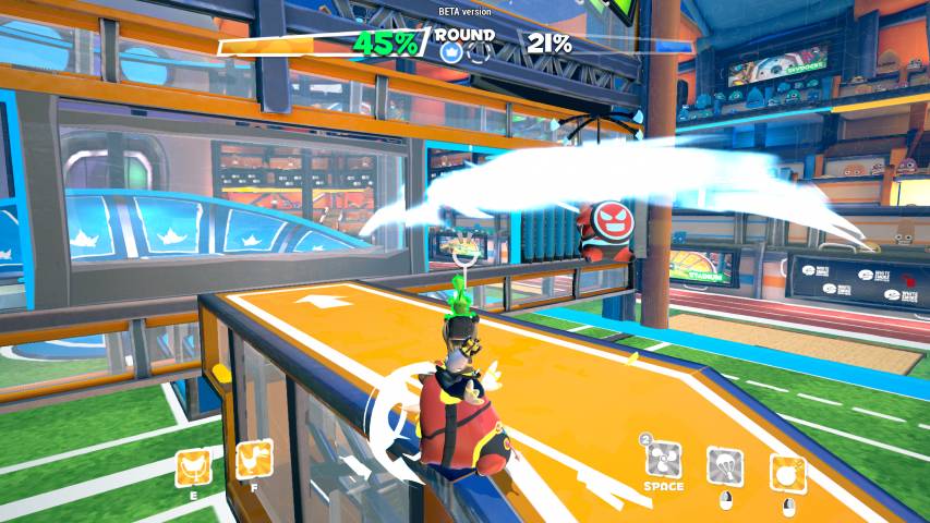 Graficamente, il gioco è davvero grazioso. Il 3d è ben sfruttato sia per le costruzioni solide, che per i modelli dei personaggi, e le animazioni sono di buona fattura. L’unica arena di gioco disponibile in questa beta è riccamente colorata e dettagliata, con casse audio di grosse dimensioni che “vibrano” mentre la musica di gioco ci incalza durante il match.