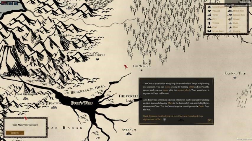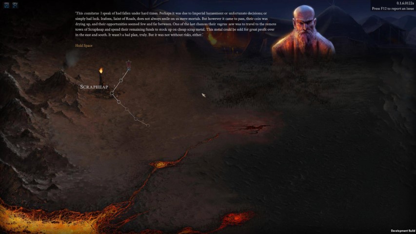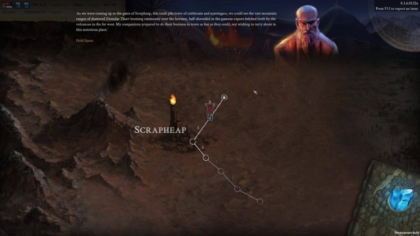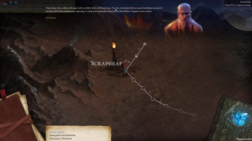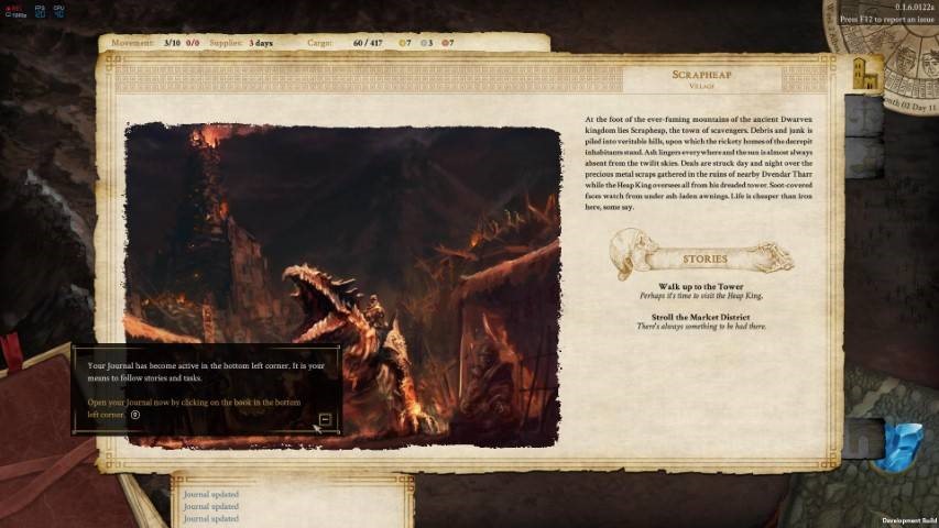 Avviato il gioco e seguito l’interessante filmato iniziale, questo prima assaggio con Vagrus partirà con il Prologo, tutorial sulle varie meccaniche che si dipanerà sotto le mentite spoglie di una storia raccontata dall’anziano del villaggio. Ciò che colpisce subito il giocatore è lo stile grafico, ricercato e davvero ricco di dettagli, e questo vale sia per i disegni fatti interamente a mano, che per i menu. Il movimento della nostra carovana avverrà a tappe sulla mappa di gioco, cuore pulsante della nostra avventura.