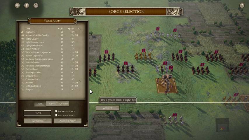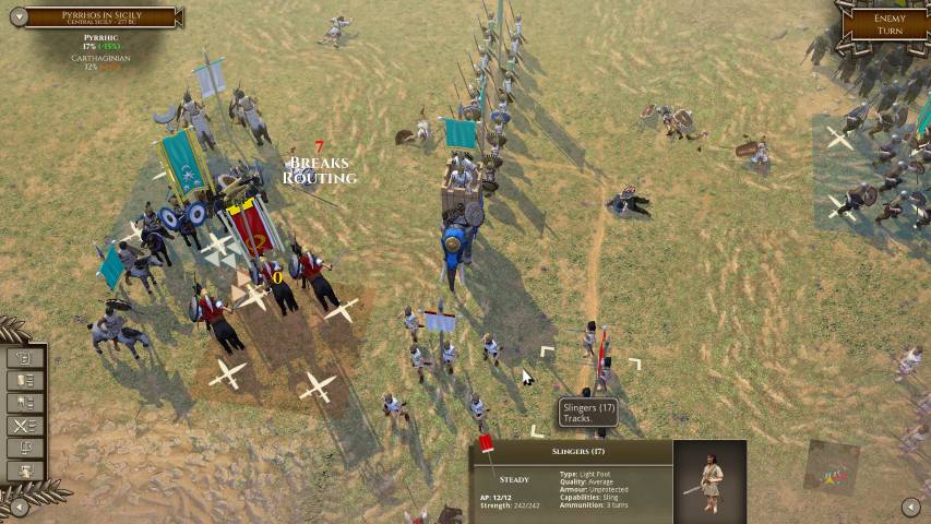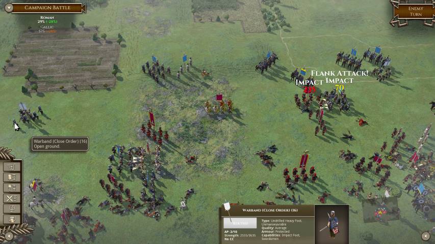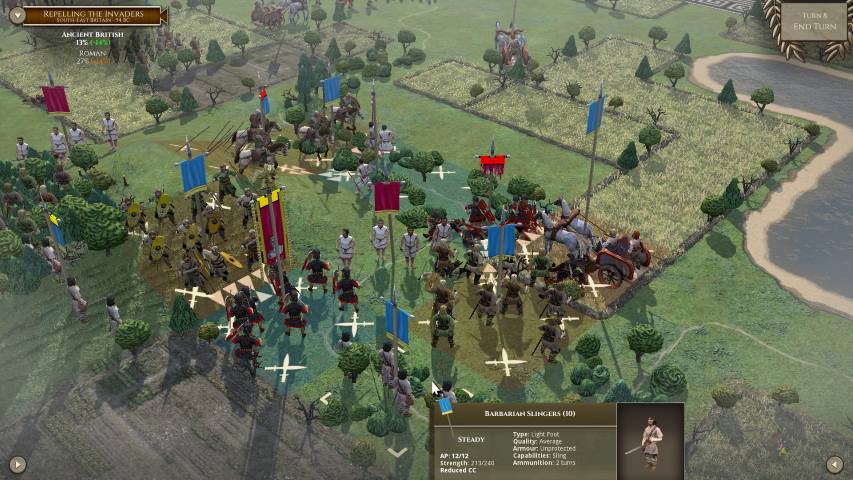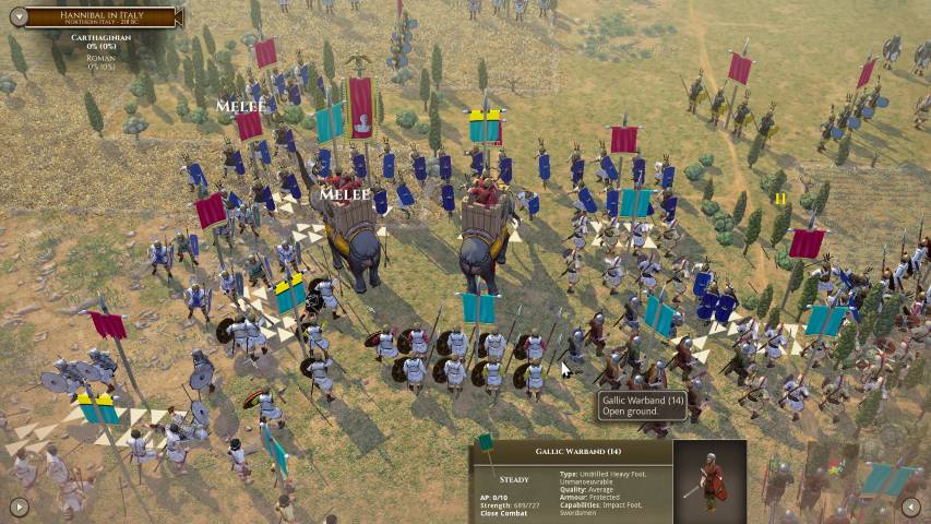 Queste sono solo alcune delle molte considerazioni che dovremo approfondire prima e durante ogni battaglia. Ma tutto questo è reso più semplice da un’interfaccia estremamente pulita. Questa, con pochi comandi ci permetterà di visualizzare quali unità sono sotto ingaggio, quali dobbiamo muovere, quante perdite abbiamo subito e così via. Si tratta pur sempre di un wargame, quindi va preso con serietà, ma il lavoro è davvero encomiabile e merita un plauso. Inoltre, le più di 100 unità che la deluxe edition ci propone fanno storia a se. Galli, Sciti, Romani, i legionari di Annibale, sono riprodotte fedelmente nel loro contesto storico. Essere appassionati di storia antica, in questo caso, non porterà solo benefici per il proprio bagaglio culturale, ma anche in gioco.