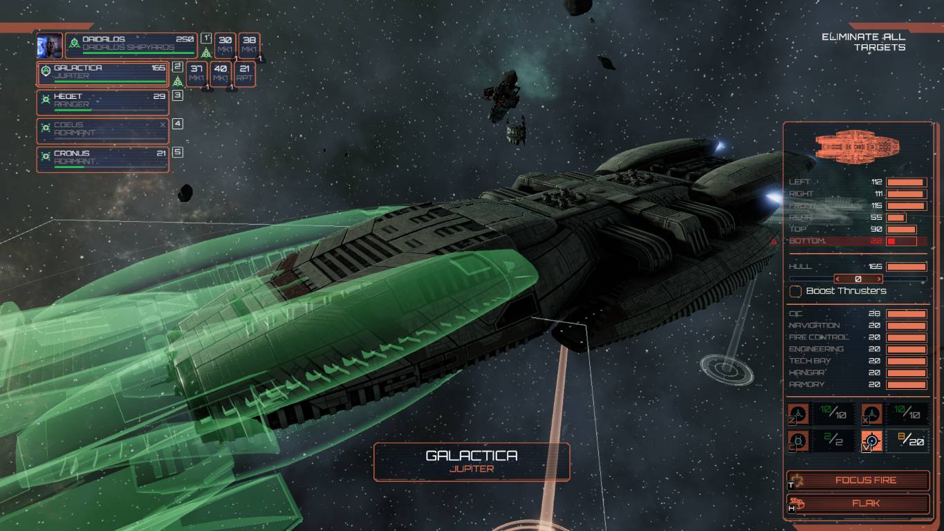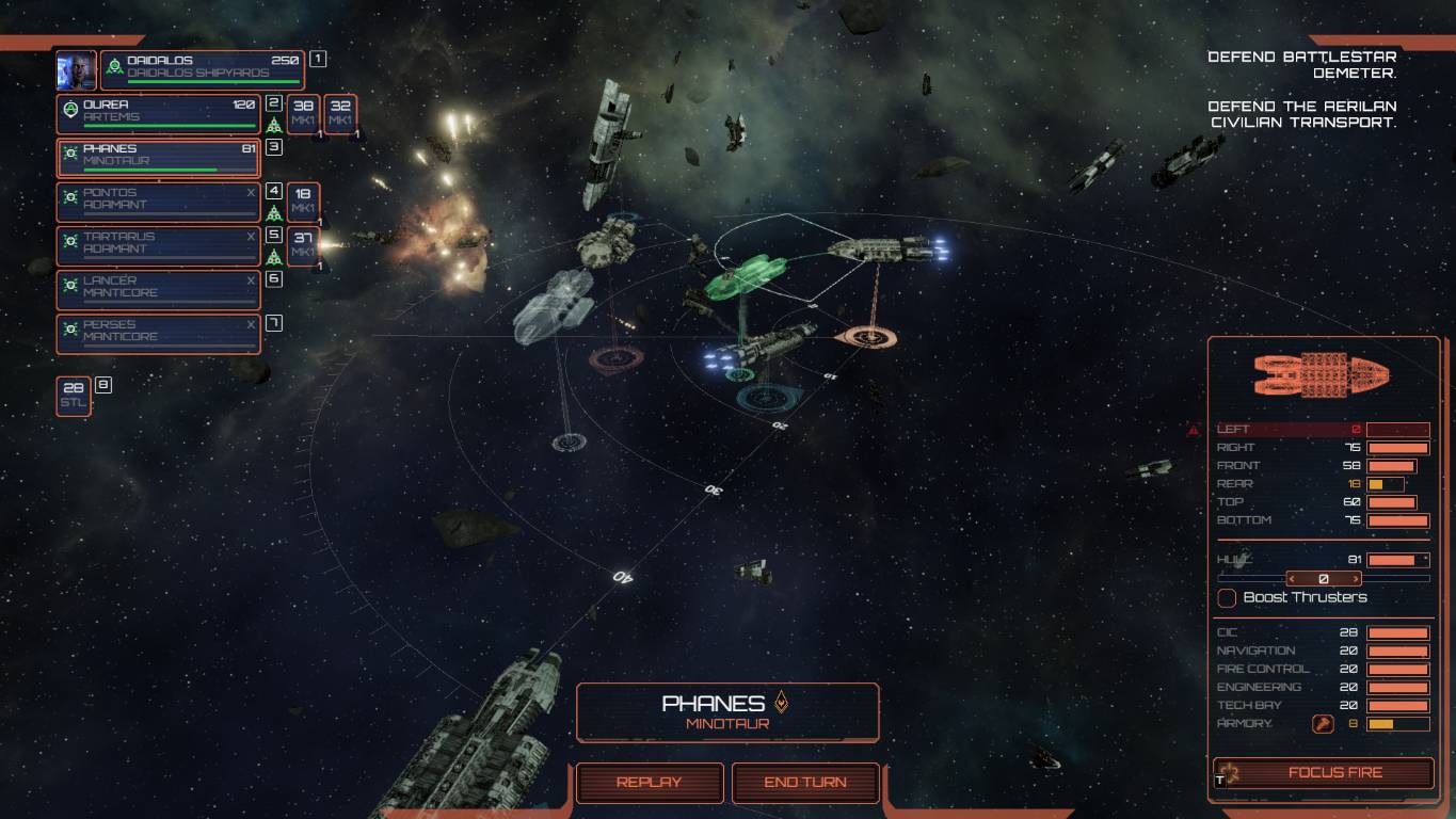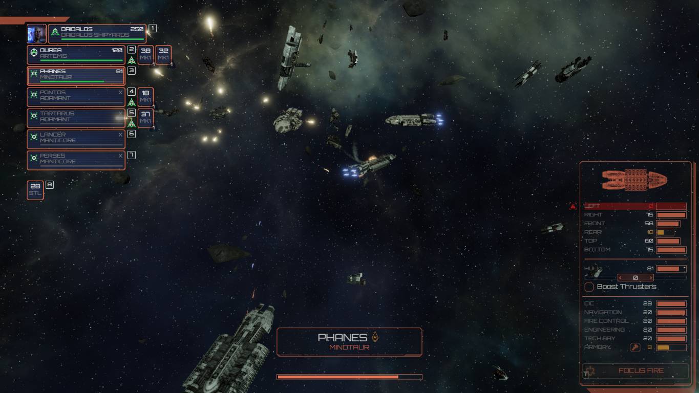 In pratica, nel bel mezzo della battaglia, quando eravamo sicuri della nostra vittoria, il Gorgon si avvicinerà alle navi nemiche riparandole in pochi turni. In una delle nostre prove, una sicura vittoria si è trasformato in una deludente sconfitta quando a corto di missili, con i fianchi scoperti e la flotta piuttosto danneggiata, ci siamo ritrovati ad affrontare navi riparate nuove di zecca.