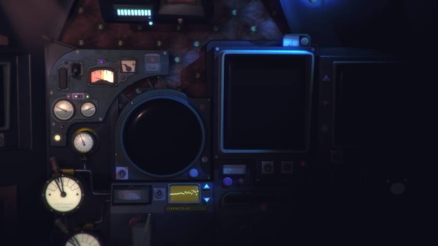 Mentre iniziamo a toccare tasti, leve e schermi come fossimo tornati bambini, notiamo in alto a fianco della leva di accensione del veicolo, un segnalatore formato da una serie di “celle” con sotto una linea. Mentre procediamo nell’esplorazione dei comandi, le celle pian piano si spengono, e la linea aumenta passando dal colore blu, all’arancione. Capiamo immediatamente che quei indicatori non rappresentano il mezzo che si sta muovendo, ma qualcosa che sta esaurendo la carica. Presi dall’angoscia iniziamo a smanettare tutte le leve cercando di accendere i motori mentre lo schermo a fianco del radar ci continua a dire “engine set to 70%, 80%, 20%”.