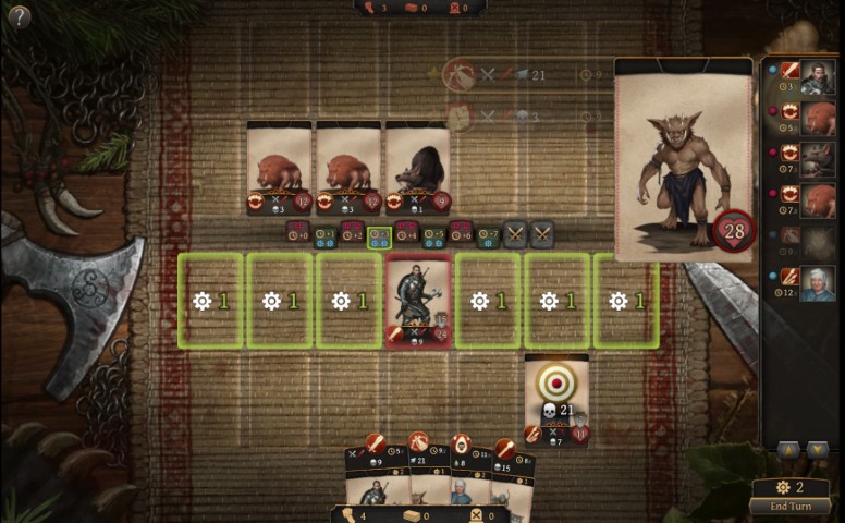 In termini di intelligenza artificiale per la parte strategica, non abbiamo la classica meccanica diplomazia/guerra, quindi la nostra intelligenza artificiale non deve occuparsene. Ma l’intelligenza artificiale dei nemici si occupa di quanto saranno aggressivi nei confronti del giocatore e questo cambierà in base all’ora del giorno o alle condizioni meteorologiche. E poi, c’è naturalmente l’intelligenza artificiale per il gioco di carte, che deve fare i conti alcune tattiche complesse, ed è anche in grado di comprenderle. Inoltre può utilizzarne di nuove, e sfruttare le abilità in combattimento delle carte che possiede, anche se sono progettate e sviluppate in un secondo momento, o ancora implementate via mod dalla community.