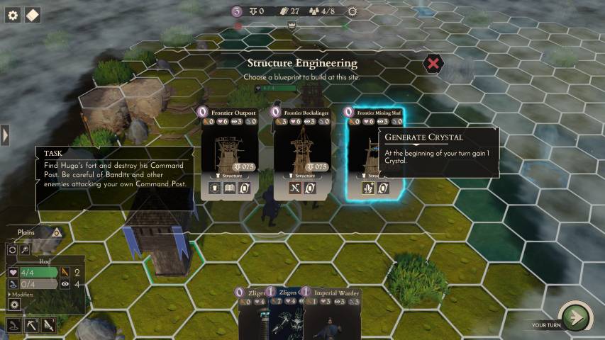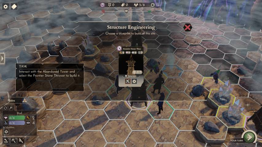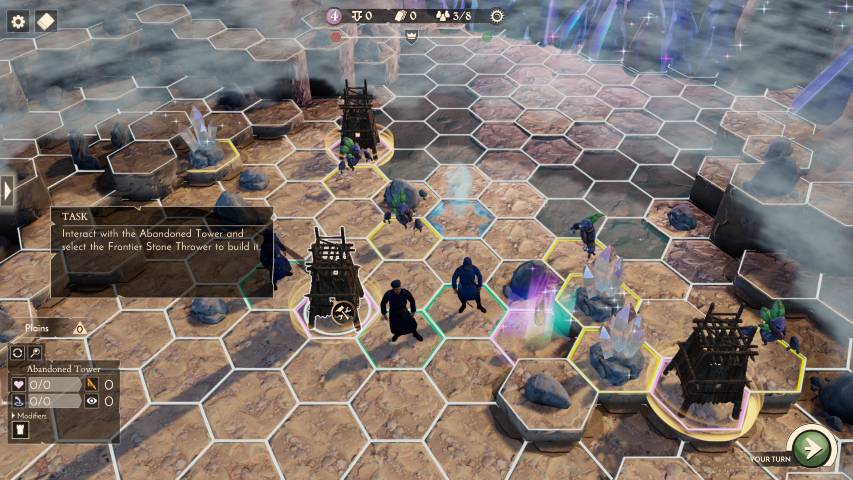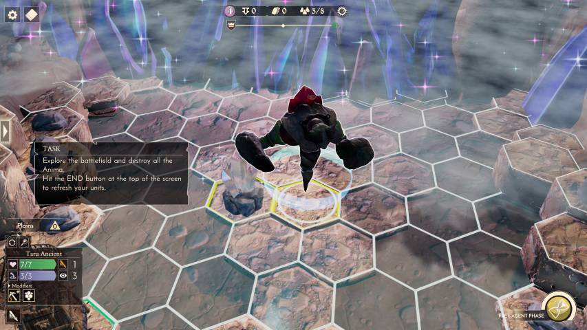 Ma le carte e le unità non potranno essere edificate o messe in campo senza due risorse fondamentali: moneta sonante e i famosi cristalli. Per quanto riguarda le monete, ad ogni turno verranno generate dai nostri depositi/centri commerciali. I cristalli, potranno essere acquisiti sconfiggendo creature che ne sono dotate, distruggendo piccole formazioni che si trovano lungo la mappa, o per mezzo di torri ad essi dedicate, che ad ogni turno ci forniranno un determinato quantitativo di materia prima. Il tutorial, che si snoda attraverso quattro mappe/battaglie, andrà a coprire anche questi elementi, anche se come al solito, l’esperienza in prima persona non ha eguali.