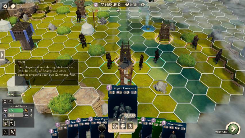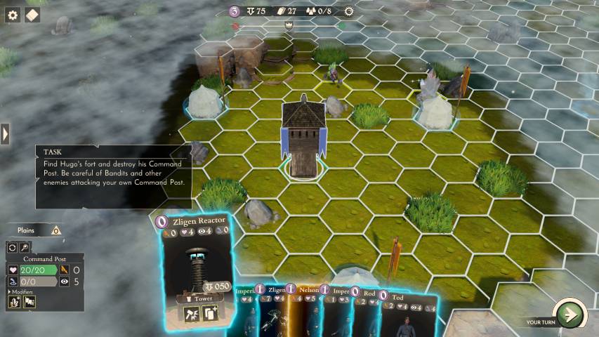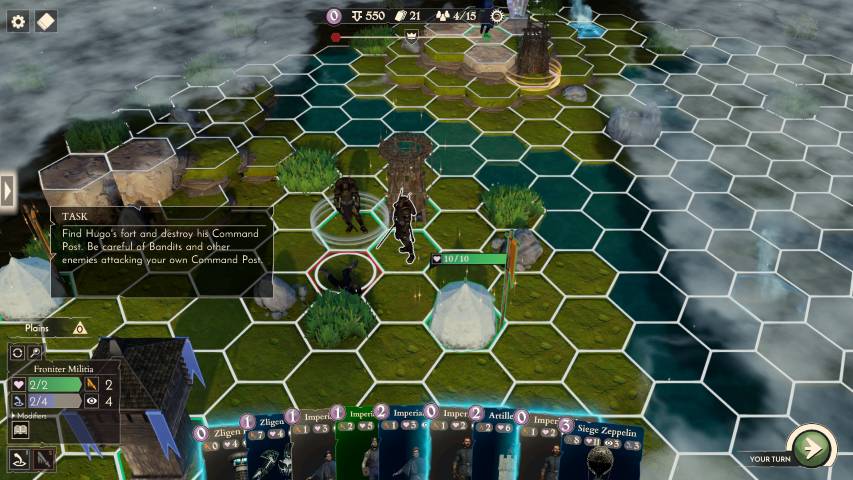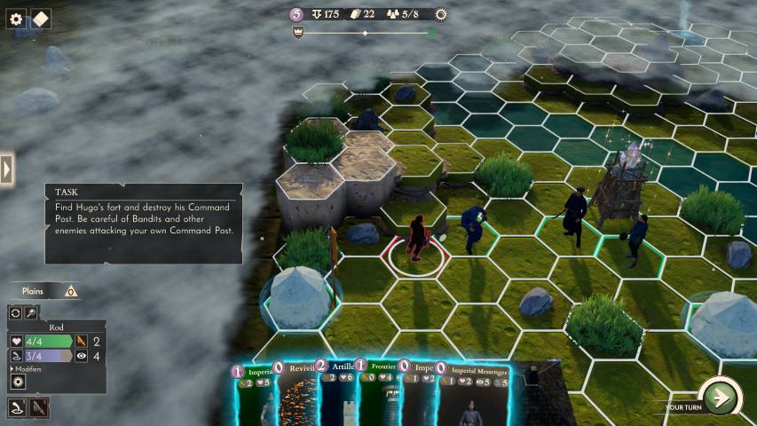 Ogni missione è divisa in una fase di “pesca” delle carte, che poi andremo a posizionare sul terreno di gioco. Finita la fase di pesca e posizionamento, si passerà al movimento delle nostre unità sulla mappa, che sarà strutturata da vari esagoni che ricordano da lontano il gioco da tavolo “I Coloni di Catan”. Ogni mappa è anche generata proceduralmente e questo aiuta molto sia per quanto concerne la varietà, sia per la rigiocabilità del prodotto.