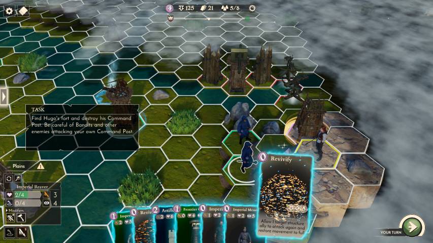 Carte costose sono sì più forti, ma utili in una fase avanzata di una partita, mentre trovarci con tre o quattro carte che richiedono molte risorse all’inizio, può portarci a rimanere con una o due sole unità per troppi turni, finendo in balia del nemico. In una delle nostre prove, cercando di rispondere ad un’offensiva piuttosto corposa, ci siamo trovati con carte che non potevamo portare in campo causa l’alto numero di risorse, e ogni volta che mettevamo in campo un’unità questa veniva inesorabilmente accerchiata e sconfitta dal nemico. La nostra disfatta è arrivata qualche turno dopo. Un po’ come quando, ad esempio, si costruisce un mazzo a Magic The Gathering con carte che hanno un costo esoso in termini di mana. Un mazzo più snello può essere la soluzione. Il principio è quello della “curva di mana”. Più fluida è, meglio il grimorio si fa giocare.
