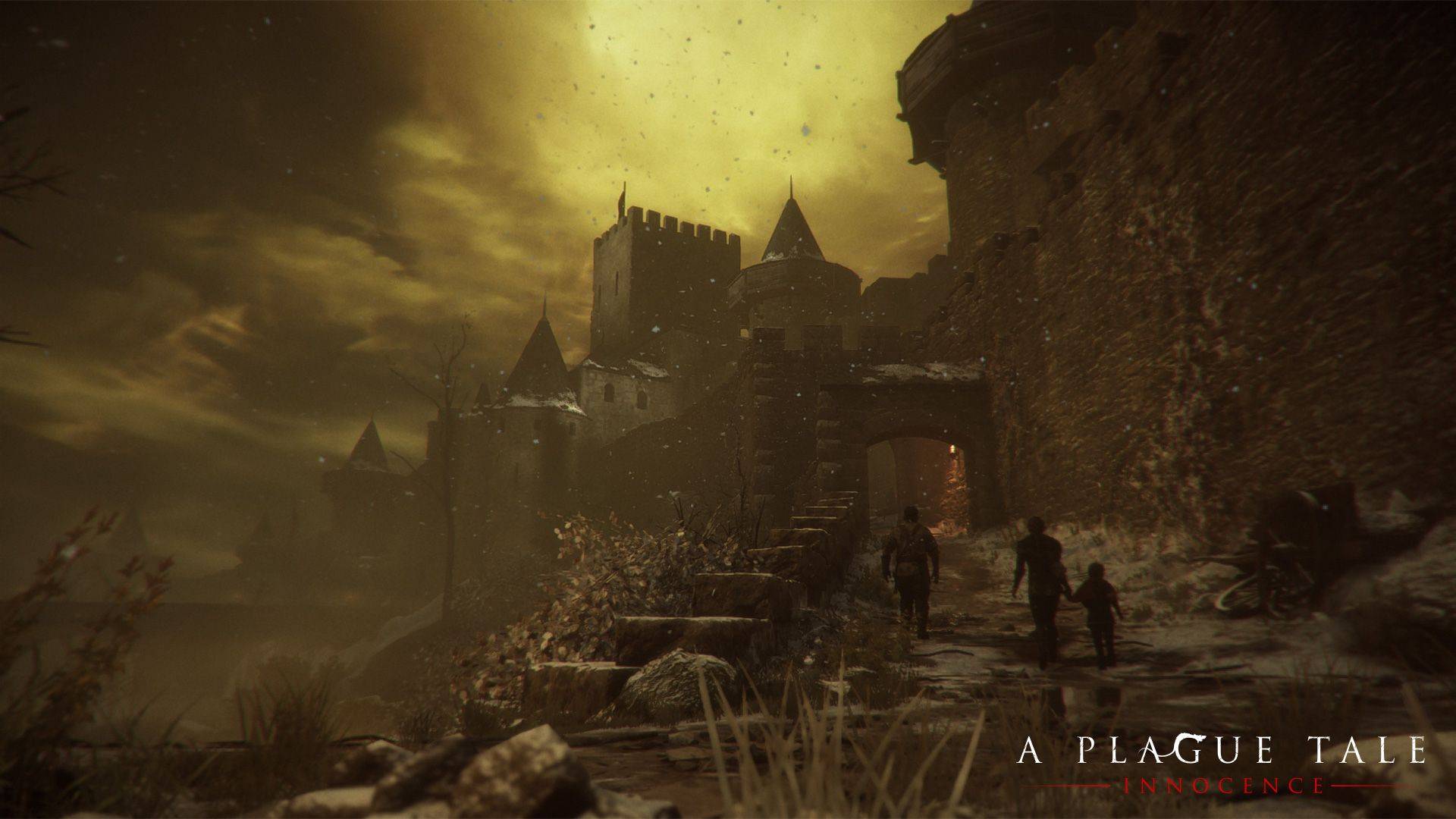 Il mondo di gioco di A Plague Tale: Innocence è di fatto simile a quello di una fiaba nera, affascinante e brutale allo stesso tempo come solo sanno essere certi racconti, con campi di battaglia disseminati di cadaveri, topi che scorazzano per le città, soldati che combattono morendo in un’orgia di sangue e fango, paesaggi evocativi ma al contempo inquietanti.