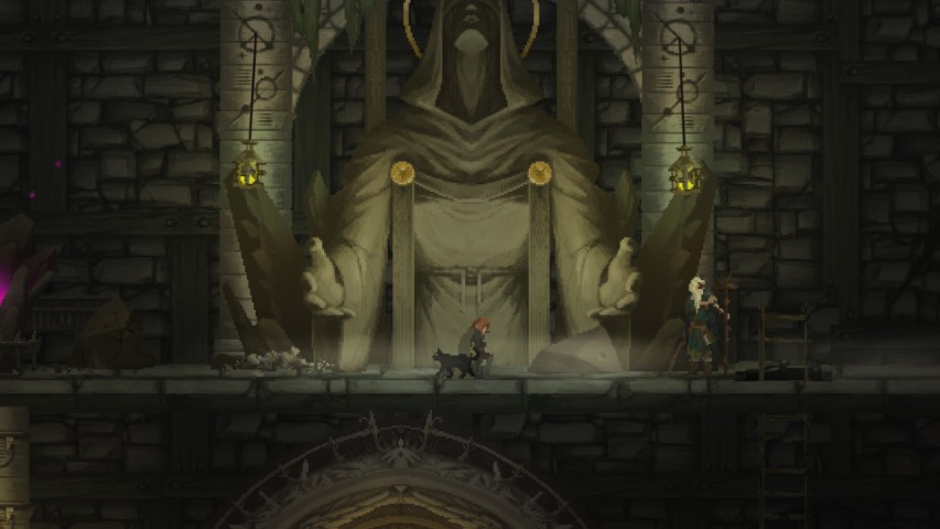 Anche boss e nemici hanno il loro perché. Soprattutto i boss. Alcuni sono davvero molto ispirati. Buone le animazioni e non mancano anche i tocchi di classe, giochi di luce, effetti “particellari” in un 2d (fiamme, polvere e così via) artisticamente davvero ben confezionato. Forse un po’ ripetitivo nelle ambientazioni ma stiamo sempre parlando di un tempio (per quanto gigantesco).