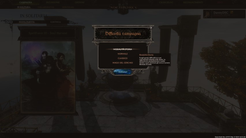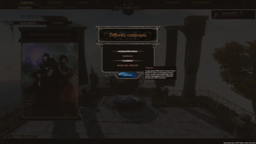 La prima scelta che dovremo compiere, sarà quella relativa al tipo di partita. La campagna, permette di essere giocata in singolo, o in co-op insieme ad un amico, e una modalità definita “Mercenari”, dove potremo creare eroi da importare nelle partite multiplayer o nelle schermaglie in singolo. Il multiplayer non cooperativo è supportato grazie alle classiche mappe in skirmish. Optato per la campagna, verrà poi la scelta relativa alla difficoltà.