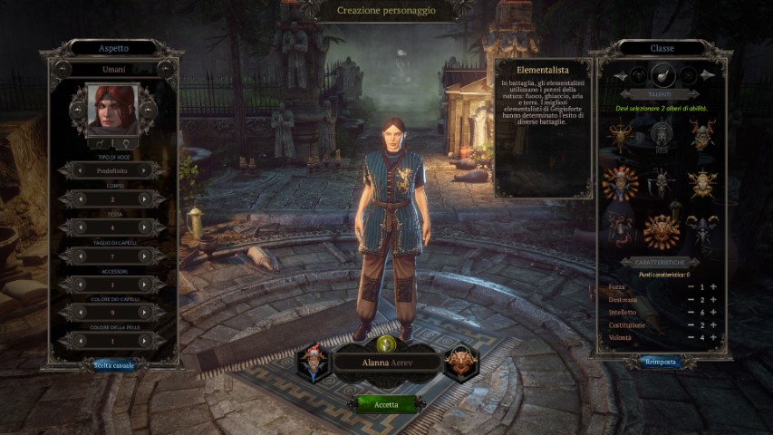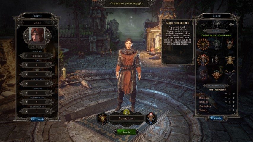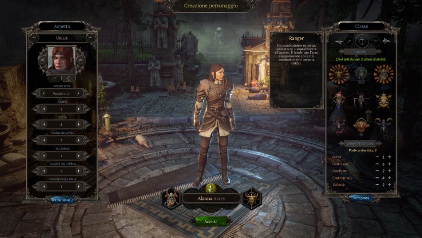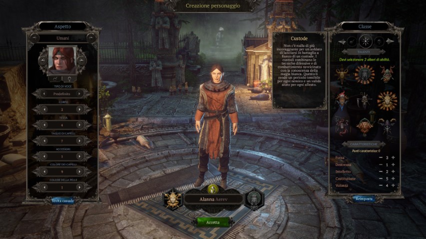 Potremo optare per una serie di archetipi già impostati, ad esempio il Cavaliere Sanguigno, il Ranger, il Mago. Se fossimo già pratici di giochi di ruolo, o volessimo semplicemente optare per una scelta più radicale, potremo creare una classe di partenza personalizzata, in base ai nostri gusti.