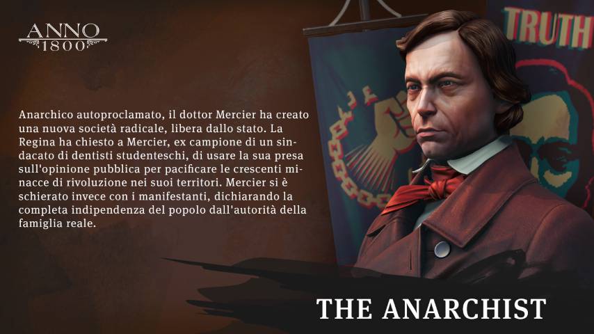 L’Anarchico è disponibile senza alcun costo aggiuntivo per i possessori delle versioni Deluxe e Collector di Anno 1800 ed è disponibile per il download a partire da oggi. Inoltre, questo contenuto scaricabile può essere acquistato come parte del pacchetto deluxe al prezzo di 9.99 euro.