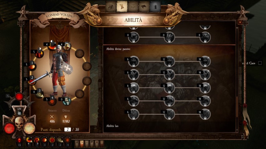 Acquisiremo, però, un punto abilità che potremo spendere per sbloccare delle nostre qualità, attive, passive o di altro genere come ad esempio abilità divine e quant’altro. Tutte queste abilità hanno tre gradi di potenza: normale, migliorata e padroneggiata. Ovviamente più alto è il grado più efficace e devastante è l’attacco.
