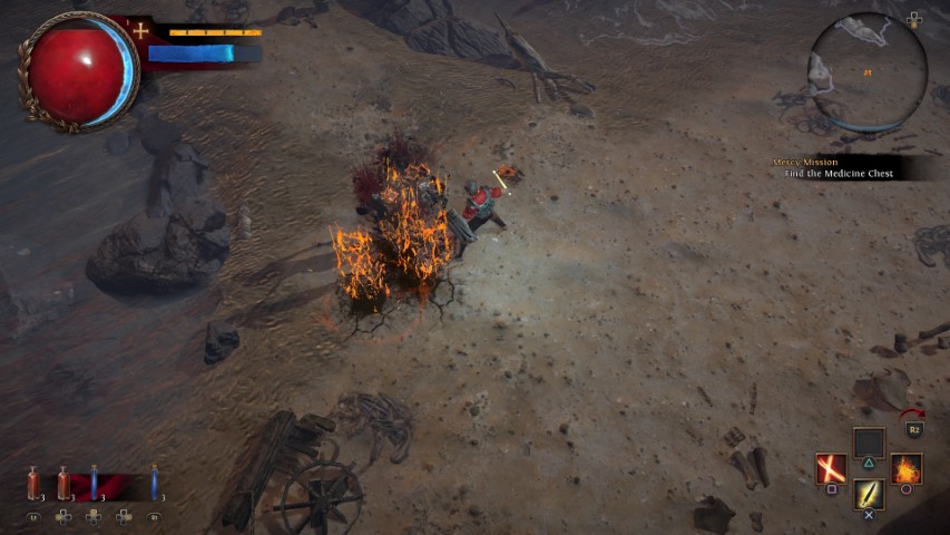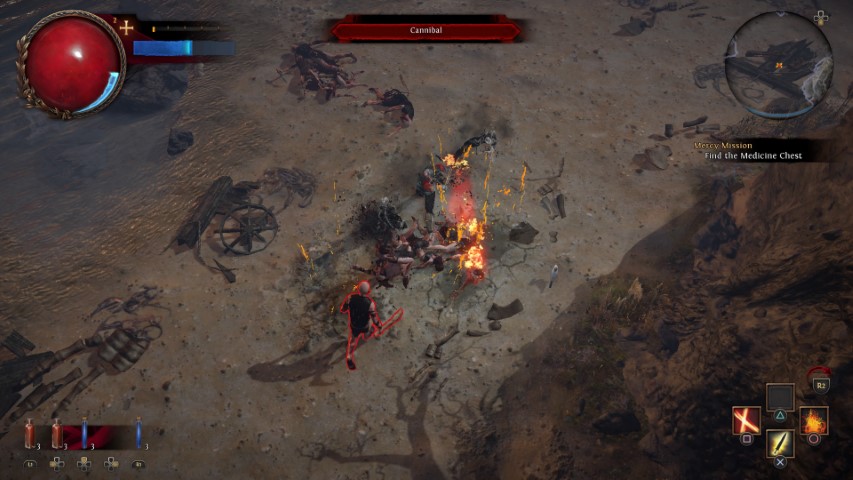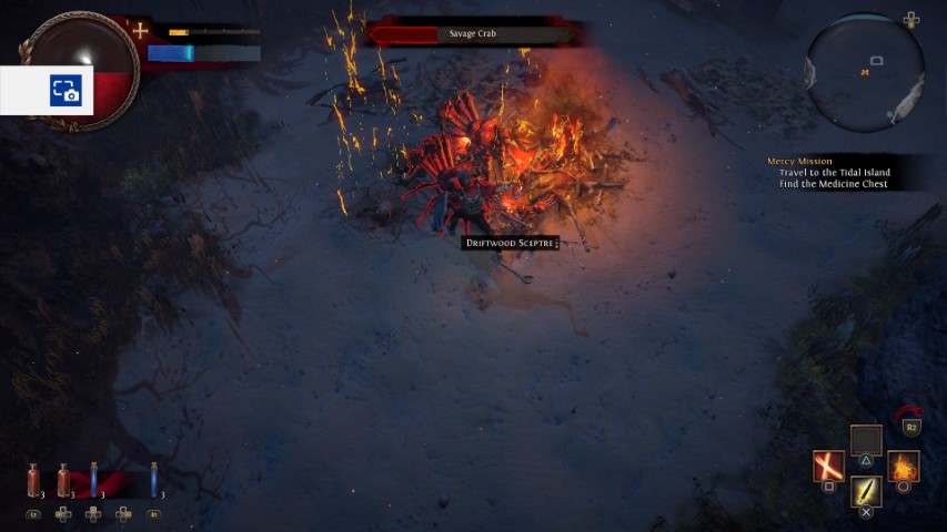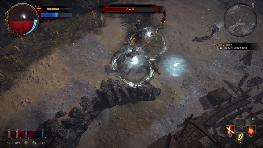 Prendendo a piene mani da altri mostri sacri del genere, ai quattro tasti del joypad verranno affidati gli attacchi e l’uso delle abilità speciali. I dorsali e i tasti direzionali verranno sfruttati per le varie pozioni di cura e mana, mentre nella parte alta dell’interfaccia è rappresentata la barra della vita (una bella ampolla color rosso sangue) e la nostra energia mentale (mana, utilizzato per incantesimi e per le abilità). Premendo il tasto direzionale basso, avremo a disposizione una versione stilizzata della mappa che stiamo percorrendo. Tale mappa, a tratti, risulta un po’ poco visibile a seconda della luce del giorno.