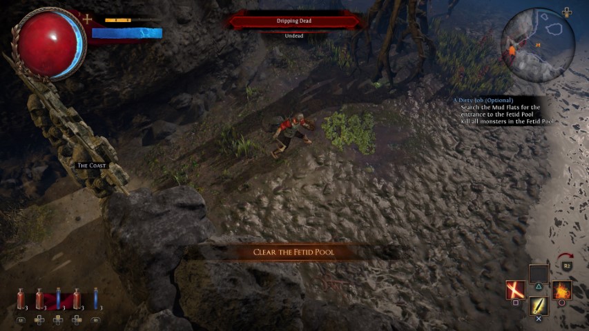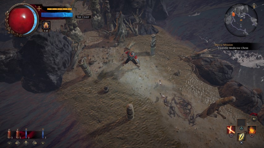Deciso classe e nome ci ritroveremo con il personaggio appena sveglio e mezzo incosciente sulla spiaggia, di notte, con un npc a darci alcune indicazioni. Non avremo nemmeno il tempo di guardarci attorno e prendere confidenza con mappa e meccaniche, perché verremo immediatamente assaliti da una piccola orda di non morti che hanno voglia di mangiarsi un po’ di carne umana dal dolce gusto di sale marino.