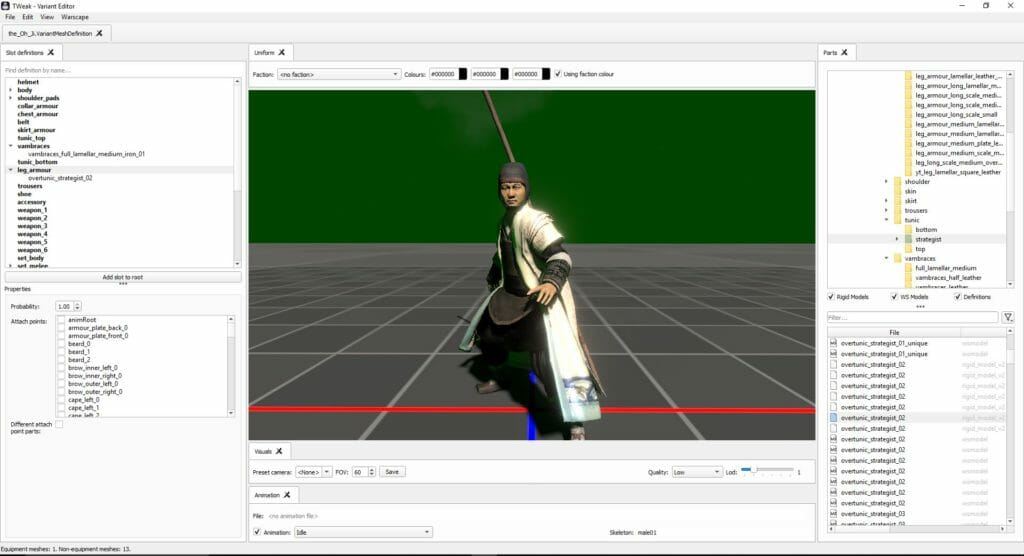 Il team ha realizzato risorse all’interno della directory Assembly_kit/artist_resources che consentiranno ai modder di fare illustrazioni in 2d dei propri personaggi, divise in componenti che ne riflettono l’atteggiamento e l’armatura. Troverete la relativa documentazione all’interno della directory stessa.