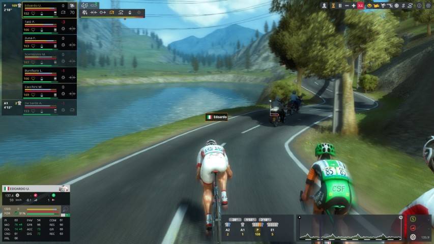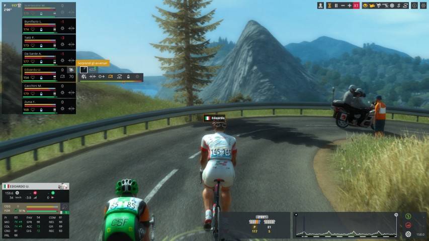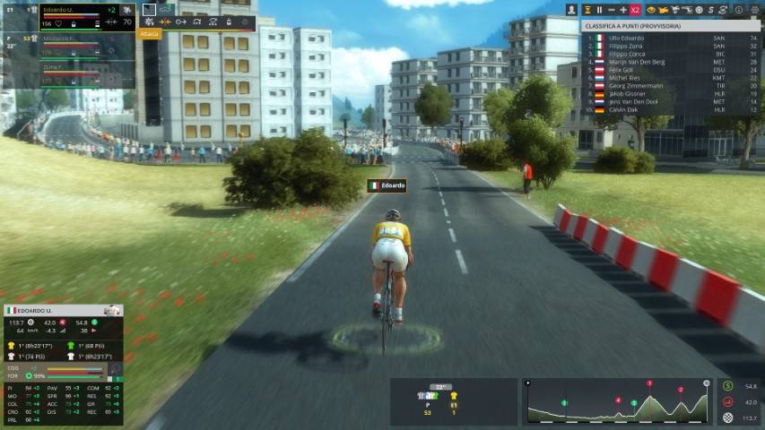 Col tempo miglioreremo le intuizioni e soprattutto il nostro alter ego sui pedali. Impareremo come e quando dosare il nostro sforzo gestendo l’intensità dell’energia durante le nostre pedalate. L’intelligenza artificiale si comporta decentemente, anzi. Non sarà facile sorprendere in modo efficace i ciclisti. La componente strategica pura è, a nostro avviso, uno dei punti migliori di questo titolo. Migliorare ed ottenere risultati diventa molto appagante. Ma c’è da dire che il ritmo è, per ovvi motivi, ricco di alti e bassi ed alcune fasi, soprattutto quelle iniziali e di studio, sono piuttosto noiose. Per fortuna è possibile velocizzare (o diminuire) il tempo fino ad 8 volte l’azione ma si rischia di poter dare gli ordini nelle giuste tempistiche.