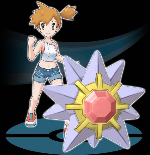 | Misty e Starmie | Soprannominata “la sirena maschiaccio”, è una Capopalestra allegra e vitale che sa anche mostrarsi stoica all’occorrenza. Tiene molto alle sue strategie di lotta. | Pokémon: Let’s Go Pikachu!, Pokémon: Let’s Go Eevee! e altri |