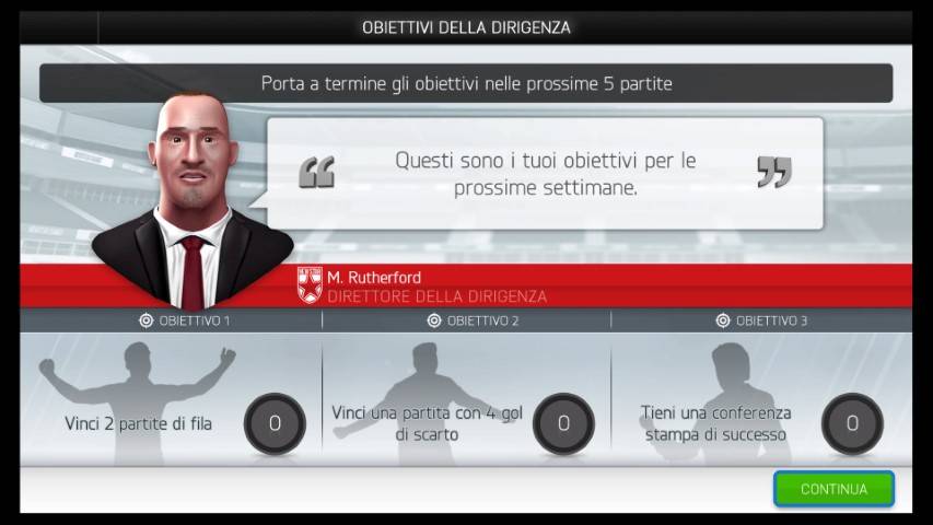 Decidiamo di partire con il campionato della nostra calda penisola, e veniamo introdotti ad un buon tutorial da uno dei nostri assistenti. Oltre alla gestione della squadra in campo, a differenza dei Football Manager, dovremo gestire anche diverse strutture. Passando per lo stadio e i campi di allenamento, il nostro compito sarà quello migliorare e ampliare lo store ufficiale della società, e confrontarci con il nostro staff.