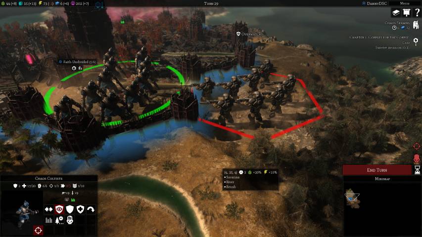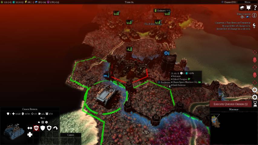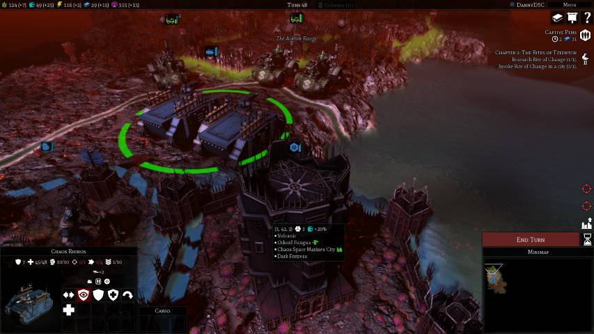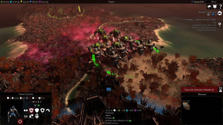 Le unità dei Khorne, Divoratori di Mondi, sono tra le prime che potremo sfruttare in questo interessante dlc. Uno degli aspetti che salta all’occhio, è la grande cura riposta nelle riproduzioni dei singoli battaglioni. Ogni soldato, carro armato, creatura, è fedele alla sua controparte “fisica” del gioco da tavolo, davvero magnifico. Iniziare una campagna con questa fazione segue le stesse meccaniche del gioco base, e come per Orchi, Space Marine, Tyranids, gli Space Marine del Caos hanno abilità di base, ricerche e costruzioni uniche.
