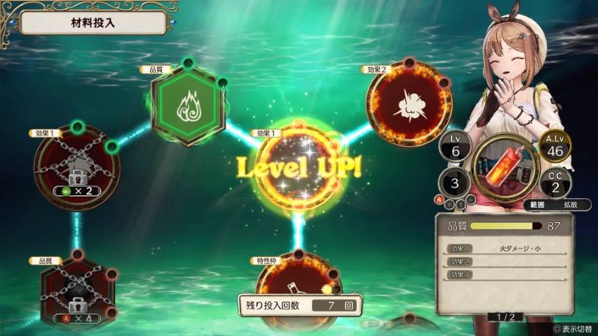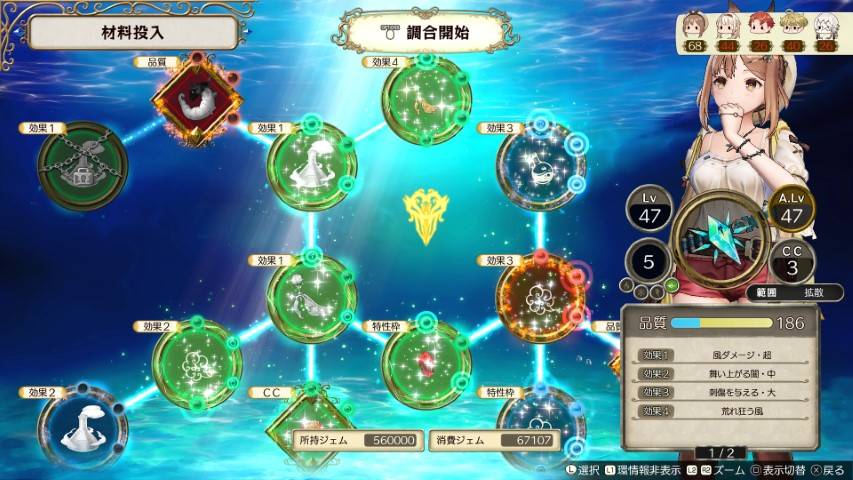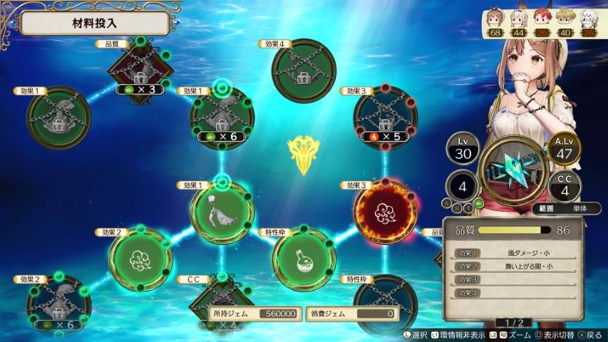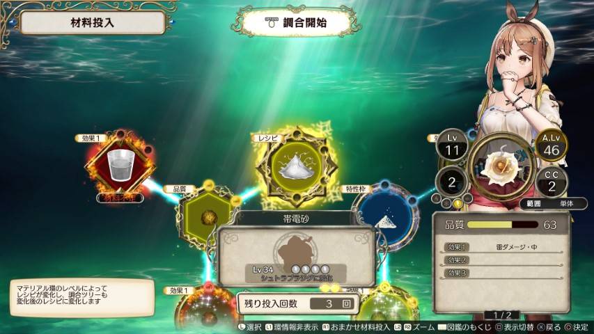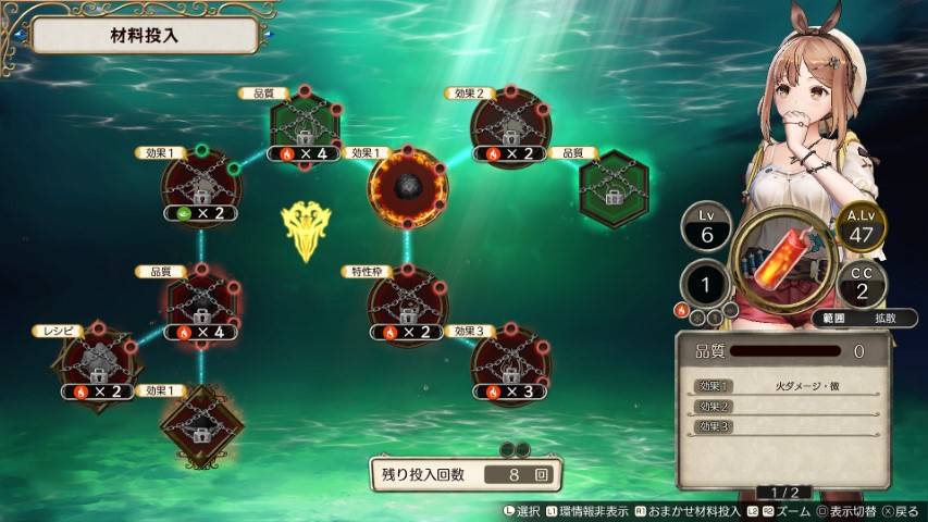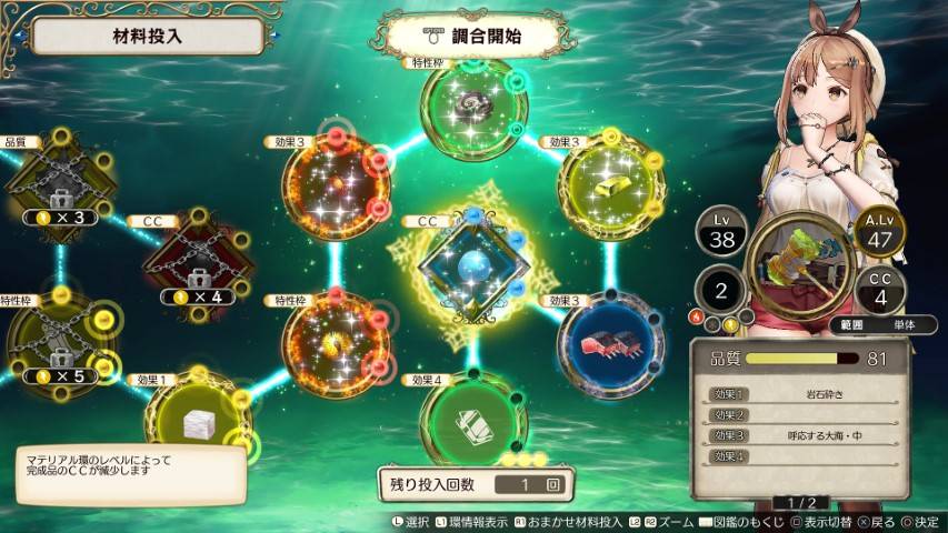 Atelier Ryza: Ever Darkness & the Secret Hideout presenta un’interfaccia di sintesi completamente rinnovata, che mostra chiaramente i materiali e gli effetti richiesti che possono essere aggiunti agli oggetti. Questo nuovo sistema “Linkage Synthesis” presenta un numero fisso di celle che i giocatori possono sbloccare tramite il posizionamento strategico degli oggetti, ottenendo una serie di risultati diversi a seconda del modo in cui le celle si ramificano. È inoltre possibile scoprire celle di ricette con modifiche speciali per sbloccare nuove ricette.