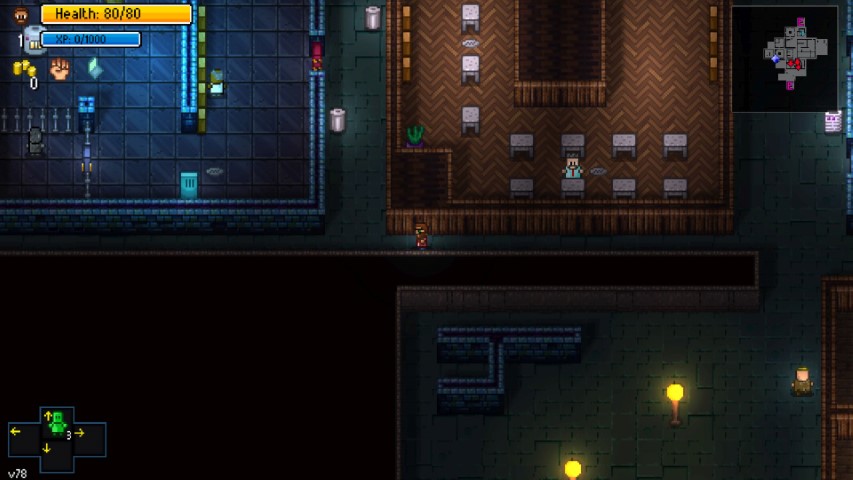 Streets of Rogue presenta una grafica in 2d con visuale dall’alto, e il level design grazie anche alla proceduralità dei livelli, è piuttosto vario. Ogni quartiere è composto da una mappa, e diverse abitazioni e locali, con vari punti d’interesse quali ad esempio prese d’aria e cestini dei rifiuti. Il gameplay è davvero veloce, e ci vedrà ad esempio infilare in una presa d’aria una sostanza sconosciuta facendo scappare a gambe levate gli npc di un edificio, solo per riuscire ad entrare in una stanza dove è rinchiuso un computer che dovremo hackerare.
