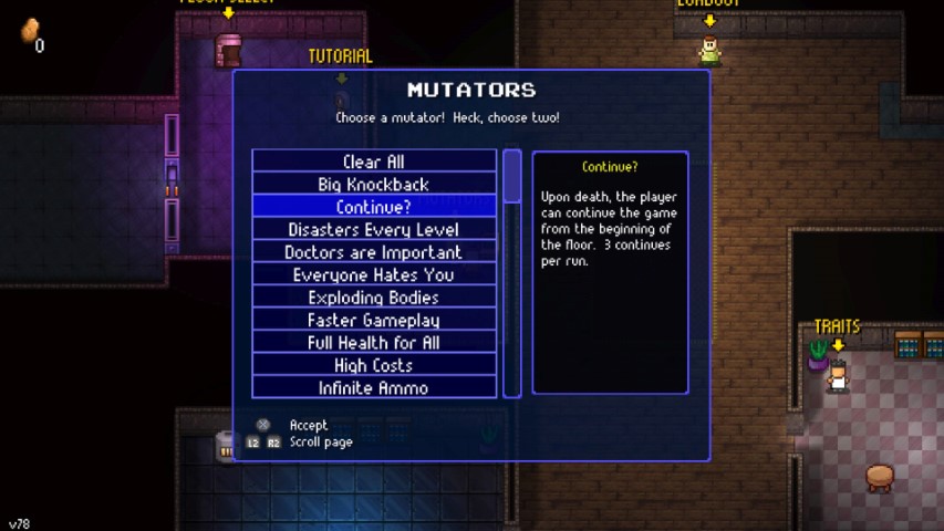 Essendo un roguelike piuttosto hardcore, il salvataggio di una partita avverrà solo alla fine del livello uscendo dal gioco. In caso di morte del personaggio, dovremo necessariamente rincominciare da capo. Ovviamente, abilità speciali e personaggi sbloccati in precedenza saranno sempre disponibili, ma perderemo monete e tutti gli oggetti guadagnati in precedenza.