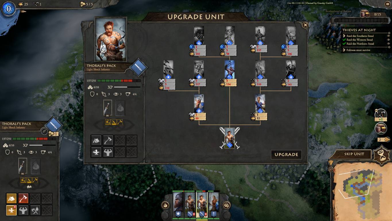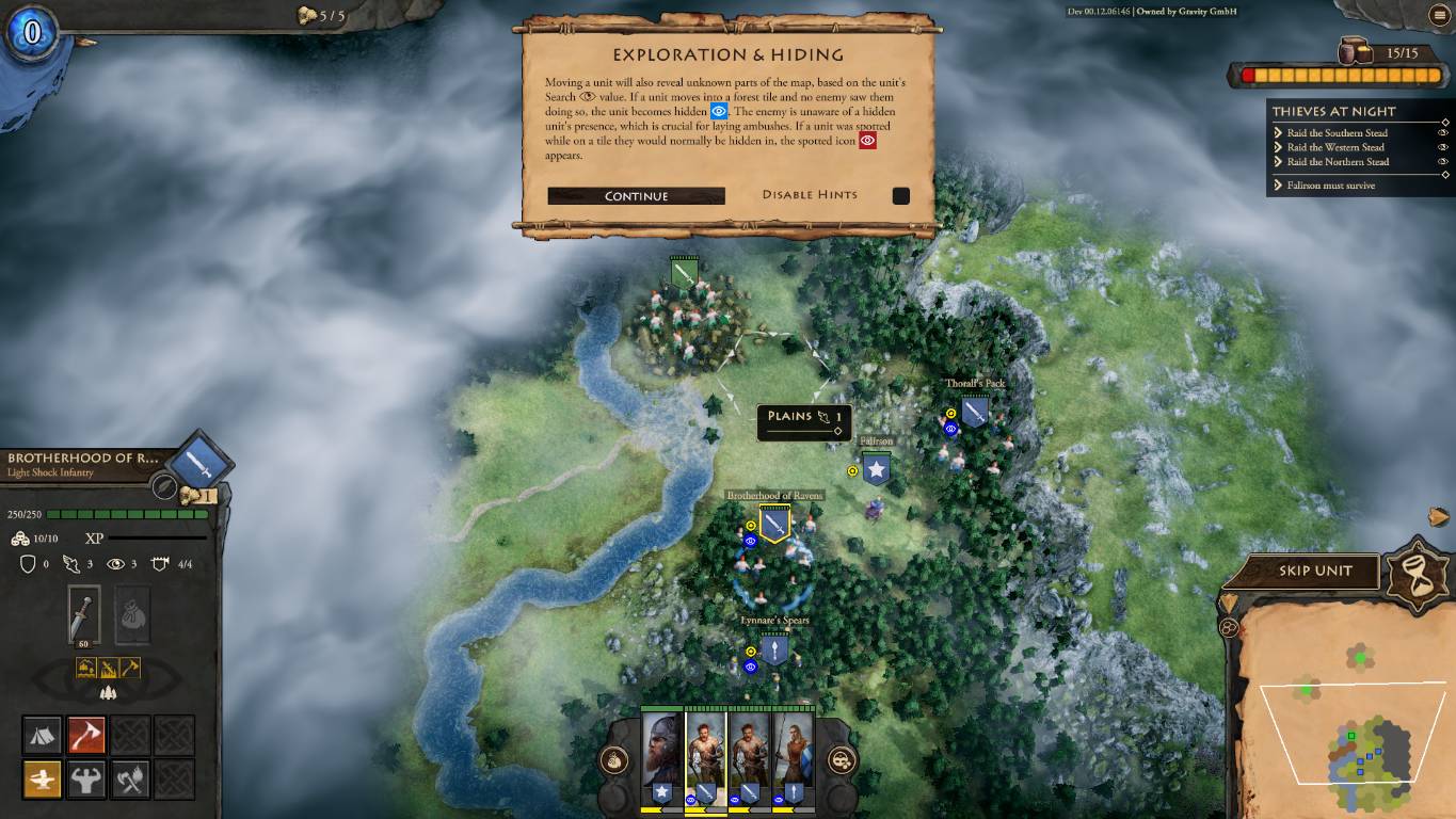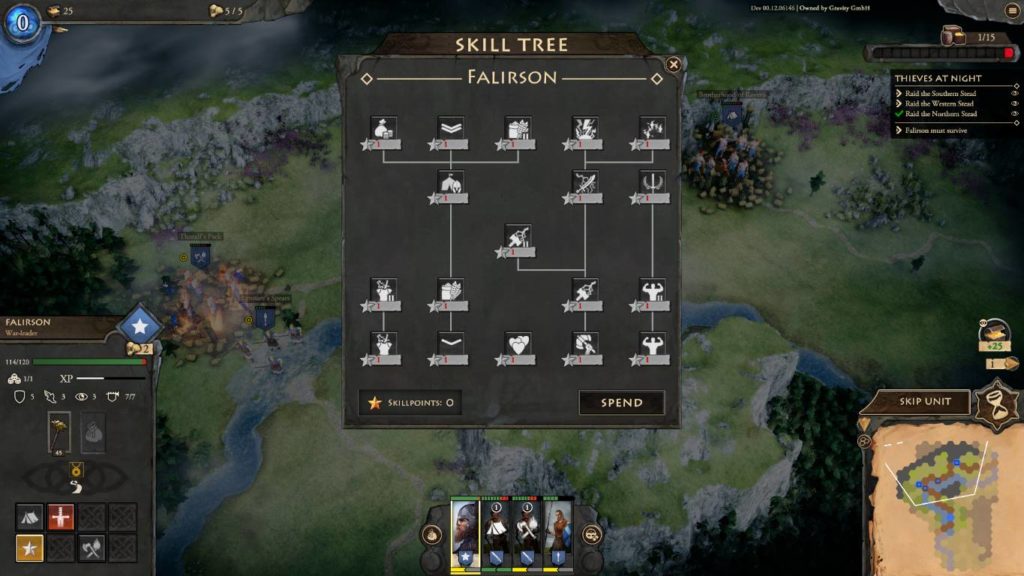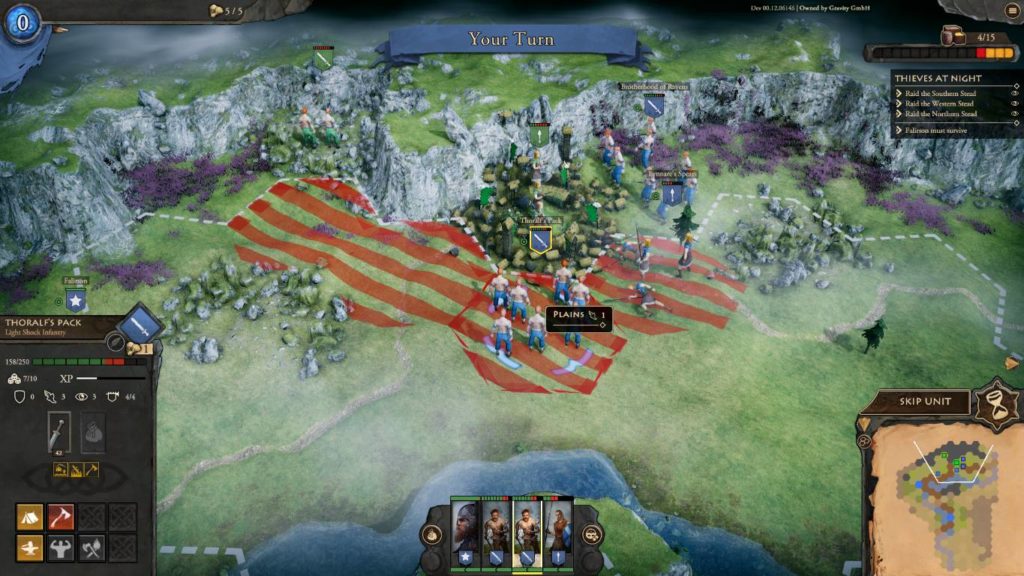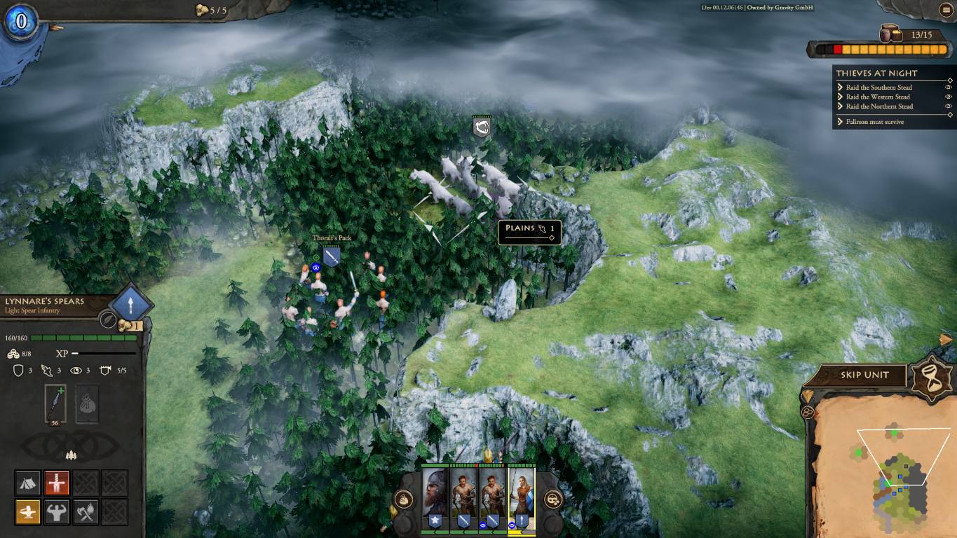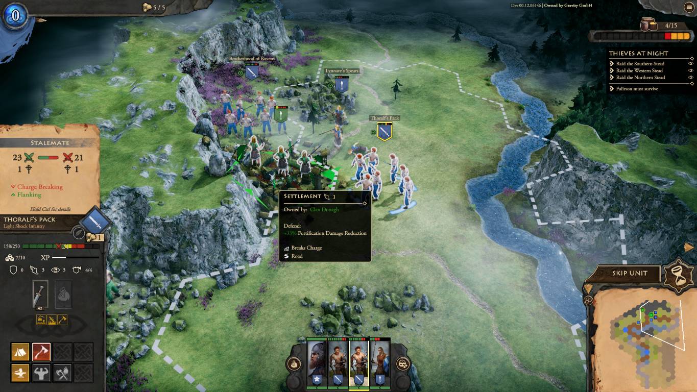 Giusto per fare un esempio, abbiamo portato i nostri guerrieri armati di giavellotto a cavalcare alci da guerra, divenendo un’ottima unità con abilità da scout e un buon livello di combattimento a distanza. Come in ogni strategico che si rispetti, ogni guerriero avrà un certo numero di punti ferita, attacco e difesa. Non mancano poi abilità secondarie e un’ottima gestione per quel che riguarda le coperture e la “fog of war”. Posizionare le nostre unità non troppo vicino a quelle nemiche, garantirà la possibilità di creare delle vere e proprie imboscate nelle quali far cadere i nemici, con esiti devastanti se ben pianificate.