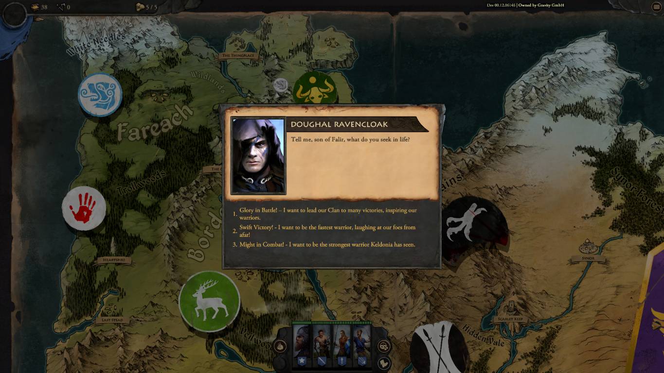 Il protagonista che impersoneremo nelle fasi iniziali è Falirson, figlio di Falir One-Eye, che dovrà destreggiarsi tra scorte, razzie e salvataggi imprevisti. Durante il gameplay, “il Narratore” ci presenterà le situazioni che dovremo affrontare, spesso con una serie di scelte tra cui poter decidere. Ogni scelta ha un chiaro impatto sul gameplay, spesso con esiti ben meno felici di quanto si possa immaginare.