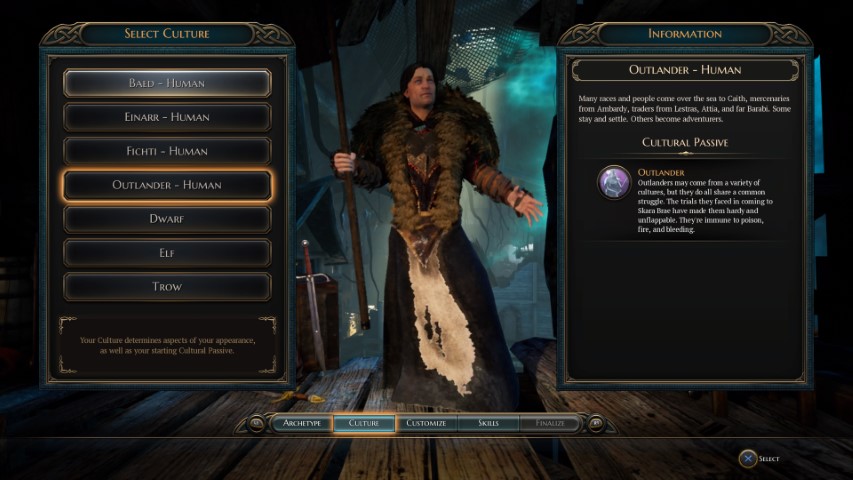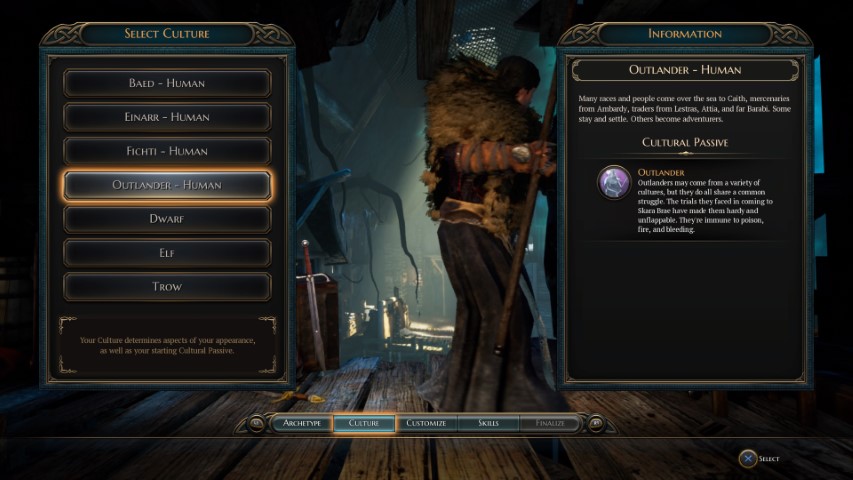Oltre ai nani elfi e trow, presi direttamente dal folklore scozzese, gli umani si differenziano per quattro discendenze, in generale affini ad una determinata classe. Per quanto riguarda il “mestiere”, oltre al bardo (e ci mancherebbe altro), potremo impersonare il praticante (mago), il guerriero o il ladro. Lo sviluppo di ogni personaggio permetterà l’utilizzo di determinate classi di armature, bonus migliorati e attacchi speciali.