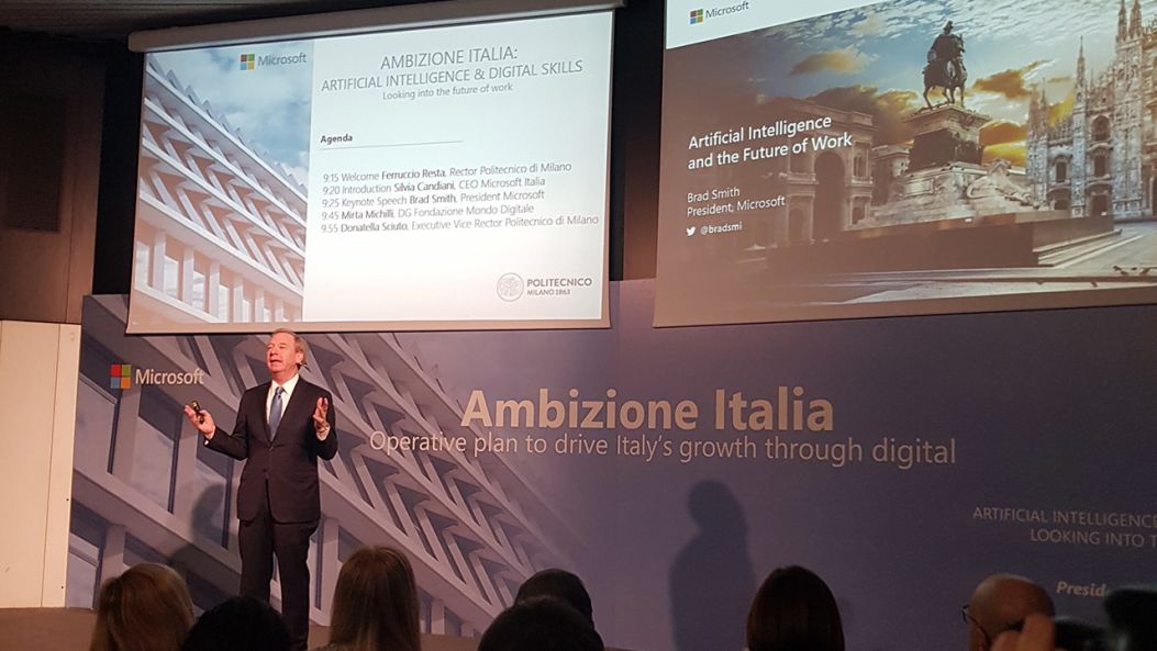 L’iniziativa rientra all’interno di Ambizione Italia, progetto di formazione avviato da Microsoft in collaborazione con numerosi partner provenienti dal mondo delle aziende e delle istituzioni. Un progetto volto ad accelerare la trasformazione digitale in Italia facendo leva sulle opportunità offerte dall’Intelligenza Artificiale e sulla formazione avanzata. L’iniziativa si traduce in un articolato programma di formazione, aggiornamento e riqualificazione delle competenze, in linea con i nuovi trend tecnologici e le richieste del mercato del lavoro. Ciò è concepito per poter contribuire all’occupazione e alla crescita del Paese, con l’obiettivo di coinvolgere oltre 2 milioni di giovani, studenti, NEET e professionisti in tutta Italia entro il 2020, formando oltre 500.000 persone e certificando 50.000 professionisti.