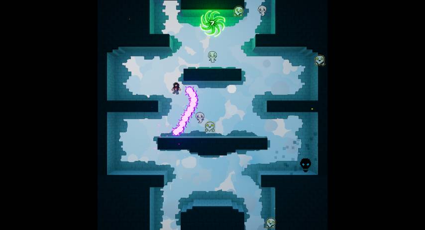 Si tratta di un platform 2d in stile arcade, in cui l’obiettivo è saltare di portale in portale in alcuni livelli simili ad arene, viaggiando tra le dimensioni e cercando di ottenere più punti possibili. Nel frattempo, alcuni mostri interdimensionali compariranno nel livello e sarà meglio sbarazzarsene prima di essere circondati. Dove sta l’inganno? Si può caricare il proprio attacco solo restando fermi.