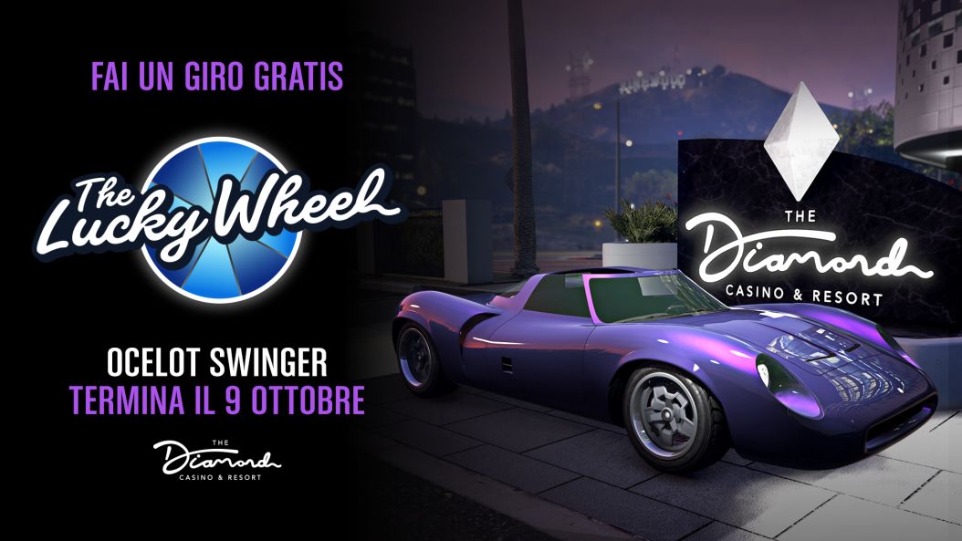 I giocatori potranno fare un salto nell’atrio del Casinò e Resort Diamond in GTA Online e fare un giro alla ruota fortunata per vincere GTA$, RP, capi d’abbigliamento e molto altro. Il primo premio di questa settimana è la Ocelot Swinger, una sportiva classica che trasuda sex appeal. Sempre che non sia qualcos’altro a trasudare.