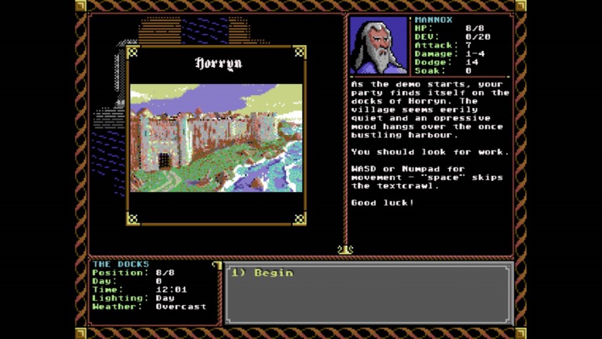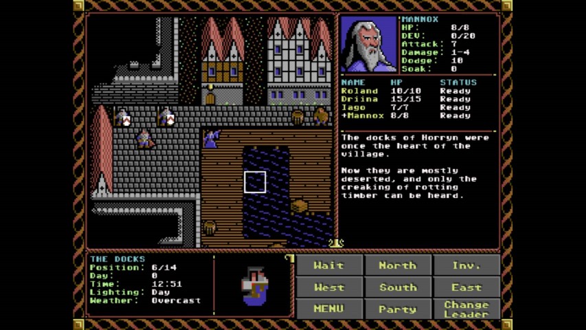 Ci troviamo nel porto di Horryn, piccola cittadina costiera che vive nella paura in seguito ad alcune misteriose sparizioni. Il movimento è affidato ai tasti W-A-S-D, mentre per la gestione del party useremo il mouse. Il movimento e i dialoghi sono semplici ed immediati, ma è importante leggere bene le battute perché spesso forniscono informazioni.