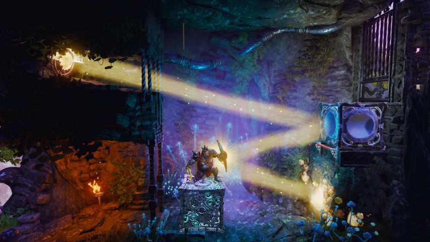 In sostanza, l’incedere ludico del titolo ci vedrà sostanzialmente armeggiare con enigmi, puzzle e combattimenti più o meno impegnativi e sempre basati sulla fisica. Ad esempio, un Boss ci lancerà delle sfere “fetide” che dovremo riflettere con lo scudo e direzionare verso il soffitto, al fine di far cadere dei rampicanti in grado di stordire il possente nemico e lasciarlo alla nostra mercé. In linea di massima, Trine 4 alternerà in modo omogeneo sezioni piattaforma, di combattimento e di risoluzione di enigmi, presentandoci ostacoli via via più complicati e che ci costringeranno a comprendere a fondo i poteri del trio.