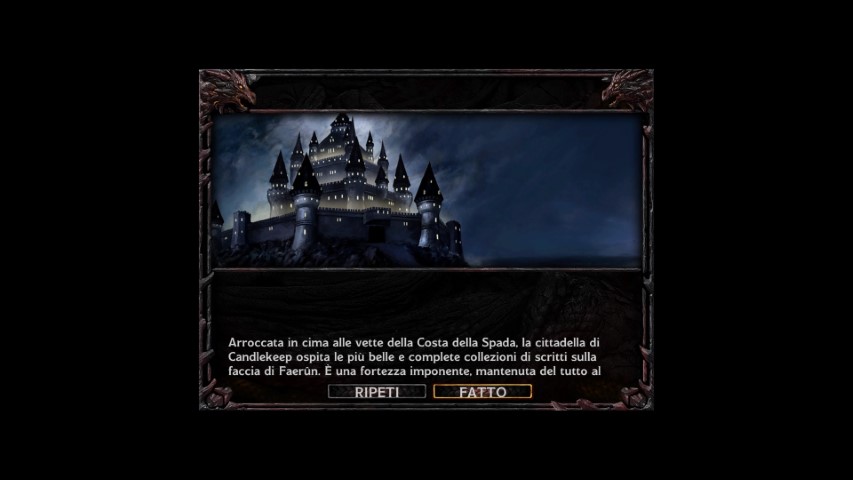La nostra storia, inizia con un filmato da cui non si riesce ad estrapolare alcuna informazione. Detto tra noi, il piccolo filmato del 1998 era ancor più bello, anche se ammettiamo che la qualità era nettamente inferiore (era anche parlato in italiano…). C’è un nemico, e sta cercando qualcuno o qualcosa, e la vuole a tutti i costi. Il nostro giovane eroe vive a Candlekeep, un borgo dove ha sede l’importante Biblioteca.