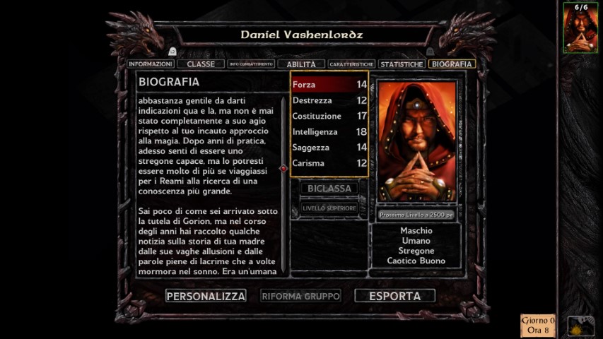 Prima di cominciare la nostra avventura in Baldur’s Gate Enhanced Edition, dovremo passare per la creazione del personaggio, in perfetto stile D&D. Tranne che per il sesso, la razza, la classe, le statistiche, saranno fondamentali per proseguire nella storia. Di base, scegliere un bardo o un guerriero non determinerà la riuscita o meno delle quest, ma cambierà RADICALMENTE ogni combattimento, visto che il primo è un personaggio di supporto, mentre il secondo è il classico tank da battaglia in prima linea.