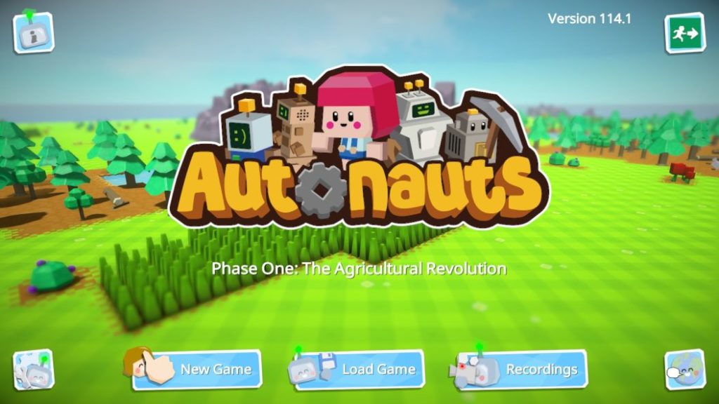 Autonauts presenta tre modalità principali, tutte accomunate dalla possibilità di generare un mondo sulla base di un “seed”, in stile Minecraft. Sequenze di numeri che corrisponderanno a caratteristiche definite a livello di conformazione del terreno, presenza di risorse e via discorrendo. Iniziando una nuova partita sarà possibile scegliere tra Colonizzazione, Libera e Creativa, dove la prima sarà la modalità più classica. Essa prevederà infatti lo sblocco dei progetti (di costruzioni, principalmente) nel corso della partita, mentre nelle altre due sarà possibile contare fin da subito sull’intero campionario di strumenti e strutture. Lo scopo del gioco è quello di colonizzare il pianeta scelto attraverso la fondazione di una vera e propria civiltà: partendo da un semplice tavolo di lavoro dinanzi a un boschetto si potrà arrivare a complessi macchinari industriali.