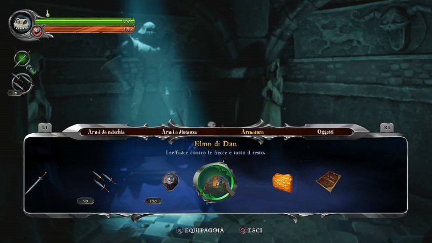 I combattimenti, al pari della risoluzione di alcuni puzzle, dei mini giochi e delle sessioni esplorative, servono sia per proseguire nell’avventura che per accumulare potenziamenti utili a far incrementare la forza distruttiva del personaggio, nonché a fargli acquisire nuove tecniche di combattimento, nuove armi (tramite il Salone degli eroi) e nuove abilità, queste ultime poi fondamentali per il superamento di determinate aree di gioco. Ci sono poi da acquisire le cosiddette Anime Smarrite, un tipo di collezionabili inseriti nel remake utili, una volta recuperate tutte e diciannove, a sbloccare la versione di MediEvil del 1998. Il resto lo fa lui, Sir Daniel Fortesque: rivederlo caracollare per le aree di gioco, con quel suo volto scheletrico, senza la mascella e dunque incapace di parlare se non attraverso dei suoni buffi, l’espressione un po’ da ebete, non lascia certo indifferenti chi ha giocato al MediEvil originale. E anzi diventa quasi il motore che spinge il giocatore a calarsi in quel mondo e lasciarsi trasportare nell’avventura senza badare troppo alle imperfezioni.