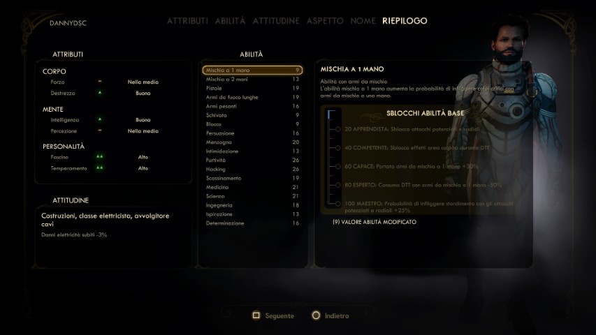 A questo, fa seguito il menu relativo alla propria inclinazione, o se vogliamo attitudine. Il nostro eroe è un ascensorista, o un elettricista esperto nell’avvolgimento dei cavi elettrici? Al di là della simpatica descrizione, le inclinazioni andranno a fornire determinati bonus, come ad esempio la resistenza ai danni elettrici. Potremo anche optare per una scelta neutra, decidendo di non applicare nessuna attitudine al proprio alter ego, la decisione sarà solo nostra.