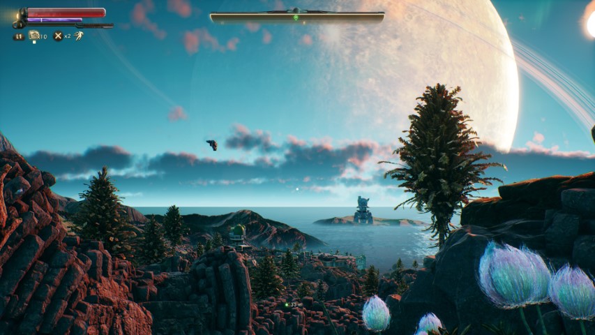 Scesi sul primo pianeta, prendiamo confidenza con i comandi, trovandoci a nostro agio se abbiamo già giocato su console a Fallout 4 o The Elder Scrolls Skyrim. Il feeling con il joypad è praticamente perfetto, forse c’è solo da aggiustare la velocità di cambio dell’inquadratura che può risultare lenta, ma si sistema tutto smanettando tra le opzioni. Il tasto R2 servirà a sparare, il quadrato a raccogliere gli oggetti e riporre le proprie armi, il triangolo per switchare tra gli slot di armi veloci, mentre il tasto X servirà per saltare.