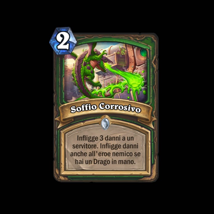 La Discesa dei Draghi include 10 nuove carte Leggendarie di tipo Drago, una per ogni classe di Hearthstone. A ulteriore supporto del tema draconico, abbiamo anche inserito le carte Soffio del Drago, disponibili per ogni classe, ognuna delle quali attiva un effetto aggiuntivo se avete un Drago in mano.