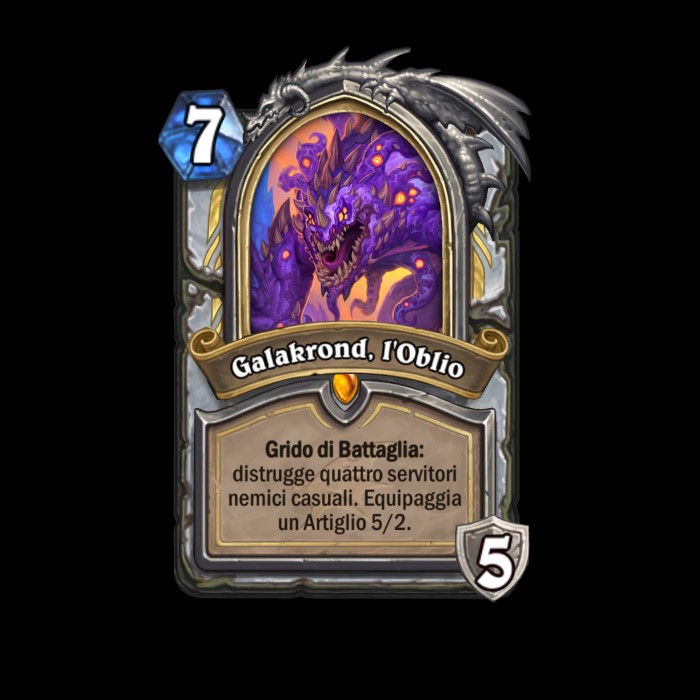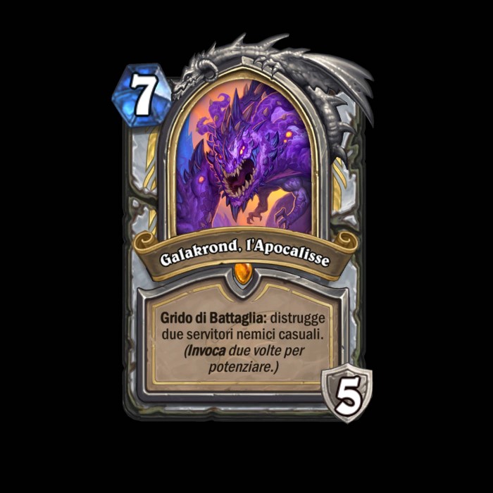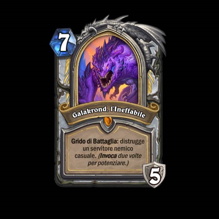 L’Arcicattivo Rafaam ha scatenato il potere di Galakrond su Azeroth. Galakrond torna sottoforma di cinque nuove, potenti carte Eroe a costo 7, disponibili per le cinque classi della Legione del M.A.L.E.: Sciamano, Ladro, Sacerdote, Guerriero e Stregone. Giocate un servitore cultista dei draghi o una Magia con l’abilità Invocazione in qualsiasi momento per attivare l’effetto del Potere Eroe di Galakrond. Invocate più volte e potrai potenziare la tua carta Eroe di Galakrond trasformandola in due forme più potenti. Come ricompensa per l’accesso, i giocatori riceveranno gratis tutte e cinque le carte Eroe di Galakrond.
