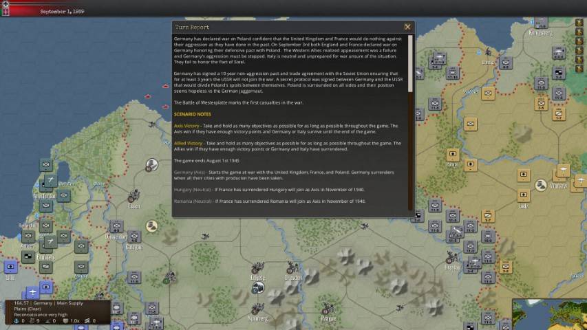 Altro punto di rottura con i wargame classici, è la profondità dei dettagli a disposizione. Siamo abituati ad un War in the East, o un Panzer Corps, ricco di dettagli su ogni singola unità. Ma qui, con una scala nettamente meno approfondita, non ci si perde nei dati relativi alle armi a disposizione, o i pneumatici montati (in Hearts of Iron c’era una ricerca che andava a migliorare il movimento delle unità proprio in caso di neve o terreni fangosi). Tutto questo si traduce in combattimenti più immediati, con rapporti di battaglia chiari ma sintetici. È tutto più “veloce”, se vogliamo.
