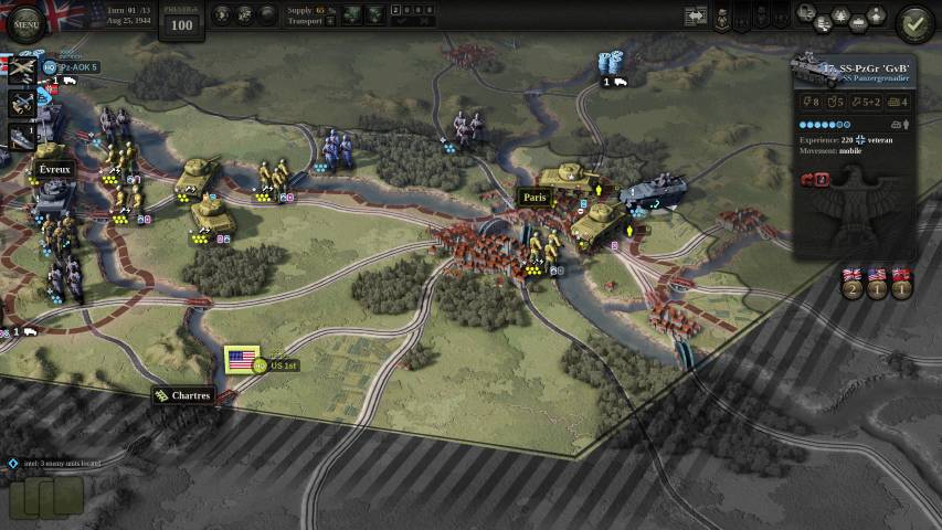 Altra colonna portante di uno strategico che si rispetti, è la gestione del flusso dei rifornimenti. Sebbene Unity of Command II non sia uno strategico duro e approfondito come Hearts of Iron, la gestione dei rifornimenti è ben riprodotta.