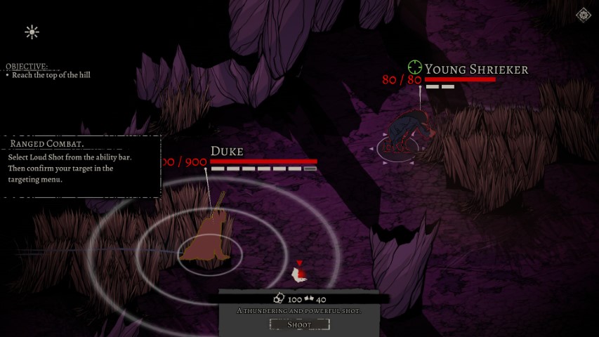 Il sistema di combattimento è a turni, e ogni scontro è decisamente difficile. I nemici hanno quasi sempre più salute di te e infliggono un sacco di danni. Molti di loro chiederanno rinforzi non appena ti vedranno, e tutti correranno per indagare se ti vedono, ti ascoltano o addirittura ti fiutano. Sul serio, in determinate circostanze sarà utile mettersi sottovento per impedire di essere localizzati.