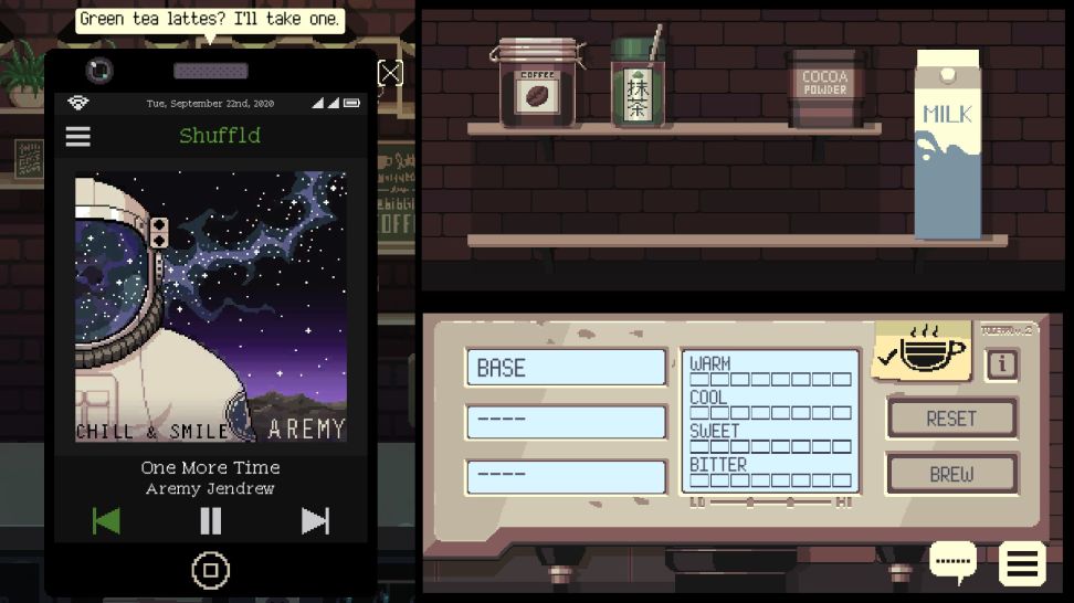 • Shuffld – Il riproduttore musicale di turno, che in questo caso permette di cambiare la musica di sottofondo della caffetteria (e quindi della partita), consentendo al giocatore di scegliere il brano che può ritenere maggiormente adatto al momento.