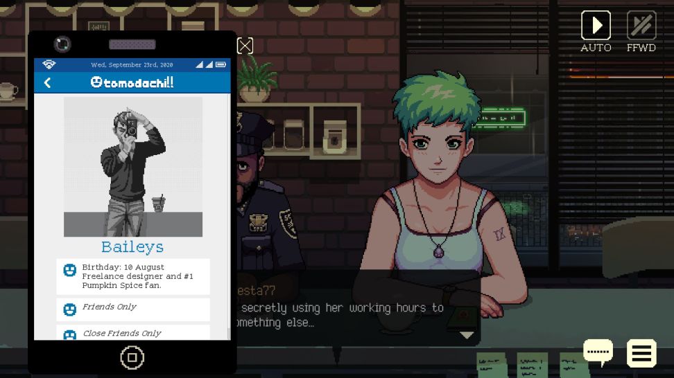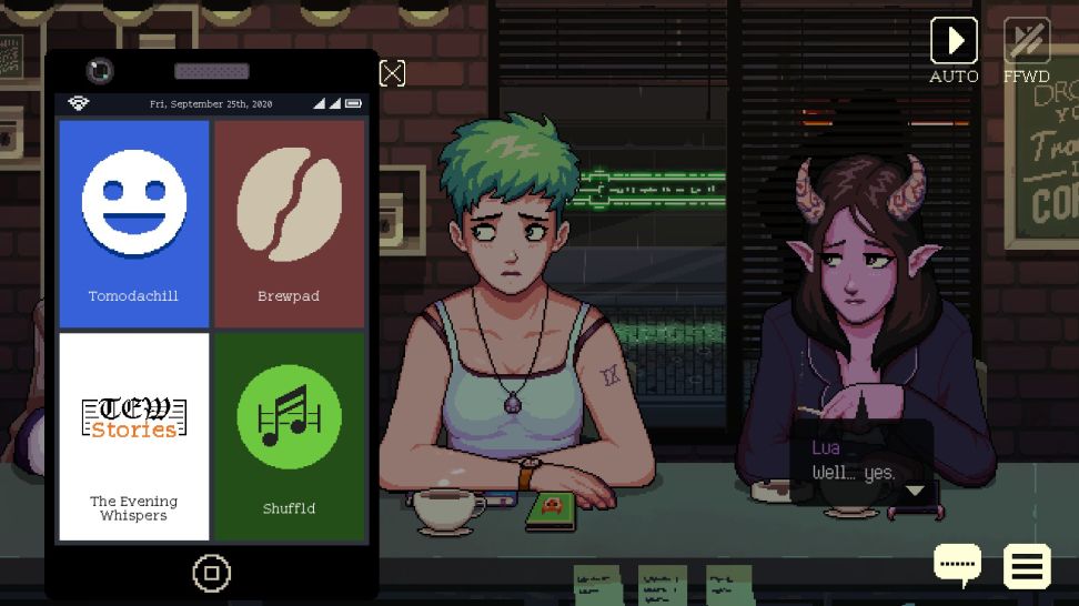 • TEW Stories – L’applicazione di The Evening Whispers, il giornale online dove lavora Freya, e da dove è possibile approfondire il contesto di gioco, come ad esempio le prime pagine dei giornali e le produzioni letterarie della giovane scrittrice, cliente affezionata della caffetteria.